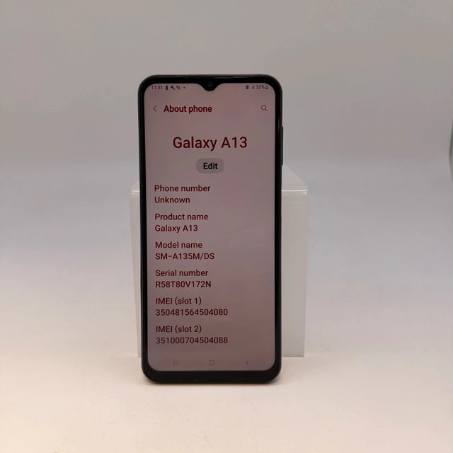 Selling a Samsung Galaxy A13 in gray color. ✔️ Model: SM-A135M/DS (Dual SIM) ✔️ Android 13 with One UI Core 5.0 ✔️ Storage: 64GB (expandable with microSD) ✔️ Great condition – fully functional ✔️ Clean IMEI, ready to use with any carrier Battery holds charge well Triple rear cameras for clear photos Comes as shown in pictures