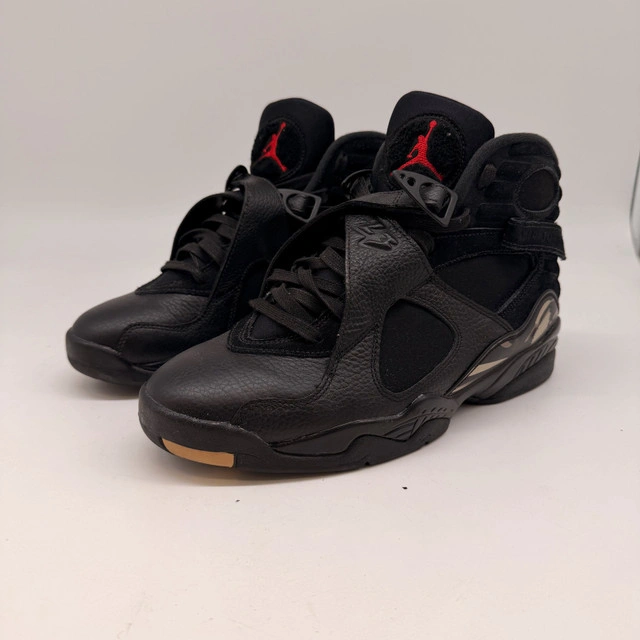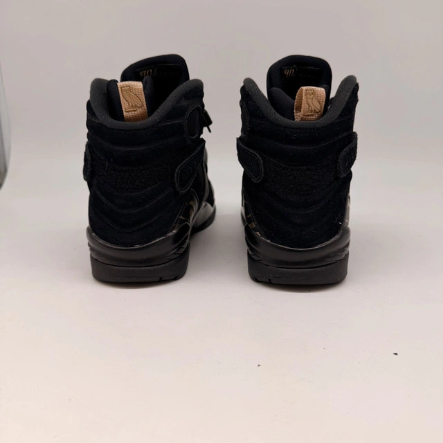 Authentic Air Jordan 8 Retro OVO “Black” (2017) from the limited OVO x Jordan collaboration. Premium leather and nubuck construction. Gold OVO owl branding on heel pull tabs and insole. Size US 10 / EU 44. Released February 2017, highly collectible. Condition: Pre-owned – gently used. Please check all photos for exact condition. Great addition for collectors or Jordan/Drake fans.