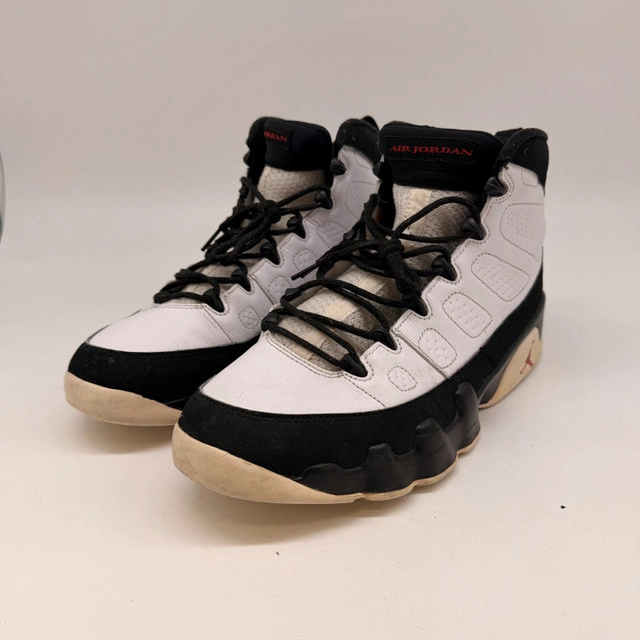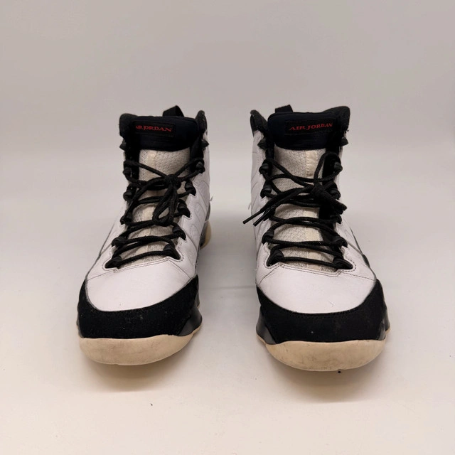 Authentic Air Jordan 9 Retro “OG” (2016 release), style code 302370-112. Size: US 12 (EU 46) Colorway: White / Black / Red Release Year: 2016 Retro OG colorway first seen in 1993 Classic Jordan 9 outsole details Condition: Pre-owned – worn with normal signs of use. Insole and original box are not included. Uppers remain clean, soles show wear (see photos). Great pair for wearing or adding to a Jordan collection.