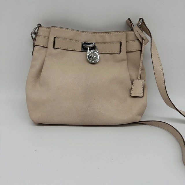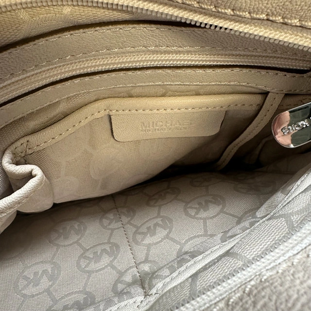This is a stylish, used Michael Kors vanilla leather shoulder satchel bag. It features a classic design with a secure top closure and an adjustable shoulder strap. The interior is spacious enough for your daily essentials. While it has been loved, it remains in good condition and ready for its next adventure. Here are some additional details: * Brand: Michael Kors * Material: Leather * Colour: Vanilla * Style: Satchel/Shoulder Bag If the ad is up, it's available, so you can be sure this stylish bag is just waiting for you!
