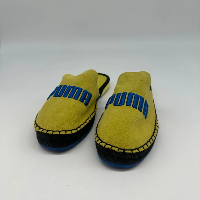 Step into style with these Fenty Puma by Rihanna espadrille slip-ons in a striking sulphur spring, blue, and black colourway. These fashionable shoes are in excellent, like-new condition. Size 8. Cash and cashless payment accepted.