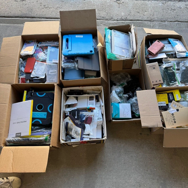 Selling a wholesale bulk lot of brand new accessories (about 380 items total): • ~75 iPad cases (various models & colors) • ~245 mobile phone cases (mixed iPhone & Android) • ~55 mobile tempered glass screen protectors • ~19 iPad tempered glass protectors • Assorted Apple Watch bands • Assorted AirPods cases All items are brand new in packaging – great for resellers, phone shops, flea market vendors, or online sellers. Everything sold together in one bulk lot. Pickup in North York. Open to reasonable offers.
