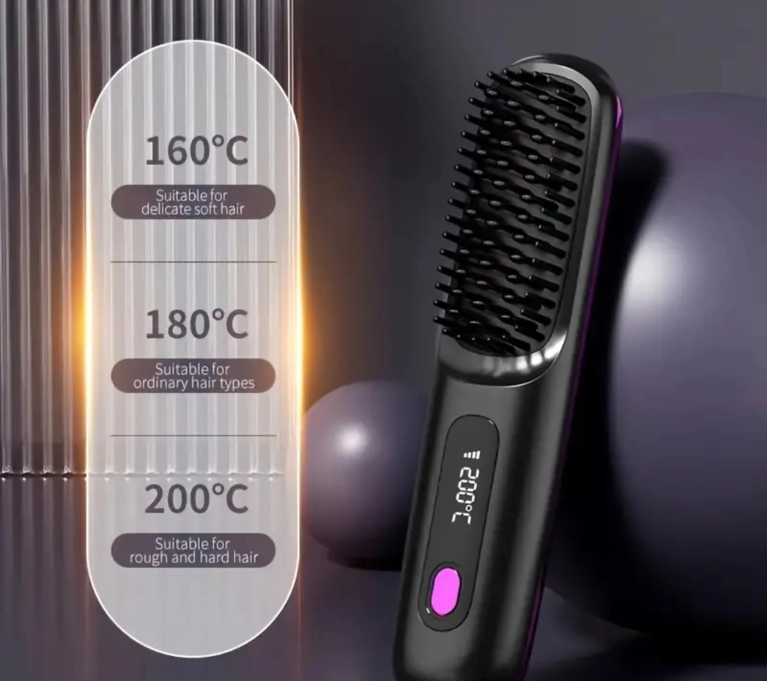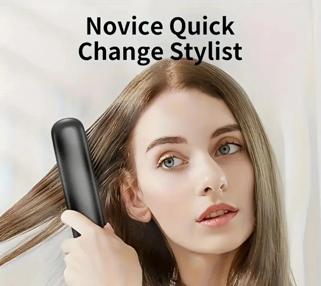 Get ready to style your hair quickly with this Novice Quick Change Stylist! This hair straightener brush is perfect for all hair types. It features three temperature settings: 160°C for delicate soft hair, 180°C for ordinary hair types, and 200°C for rough and hard hair. It's super easy to use and will have you looking your best in no time. The colour is black