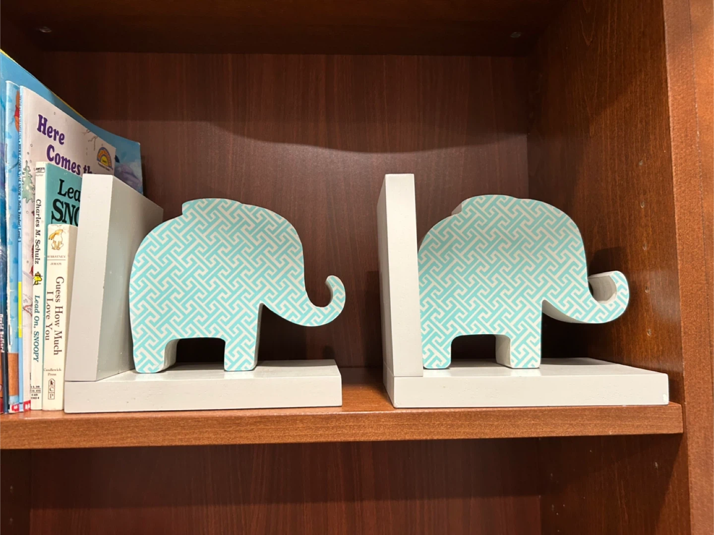 These adorable elephant bookends are perfect for a kids' room or nursery! They're in great shape and ready to hold up your little one's favourite books. The cute elephant design adds a touch of whimsy to any bookshelf