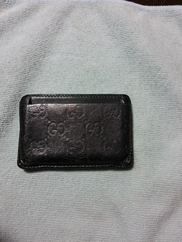 Selling a Gucci card holder in black leather. It has the iconic Gucci pattern embossed on it. It's in good condition and perfect for carrying your essential cards. has authentic stamps and verified at the Gucci store. thanks