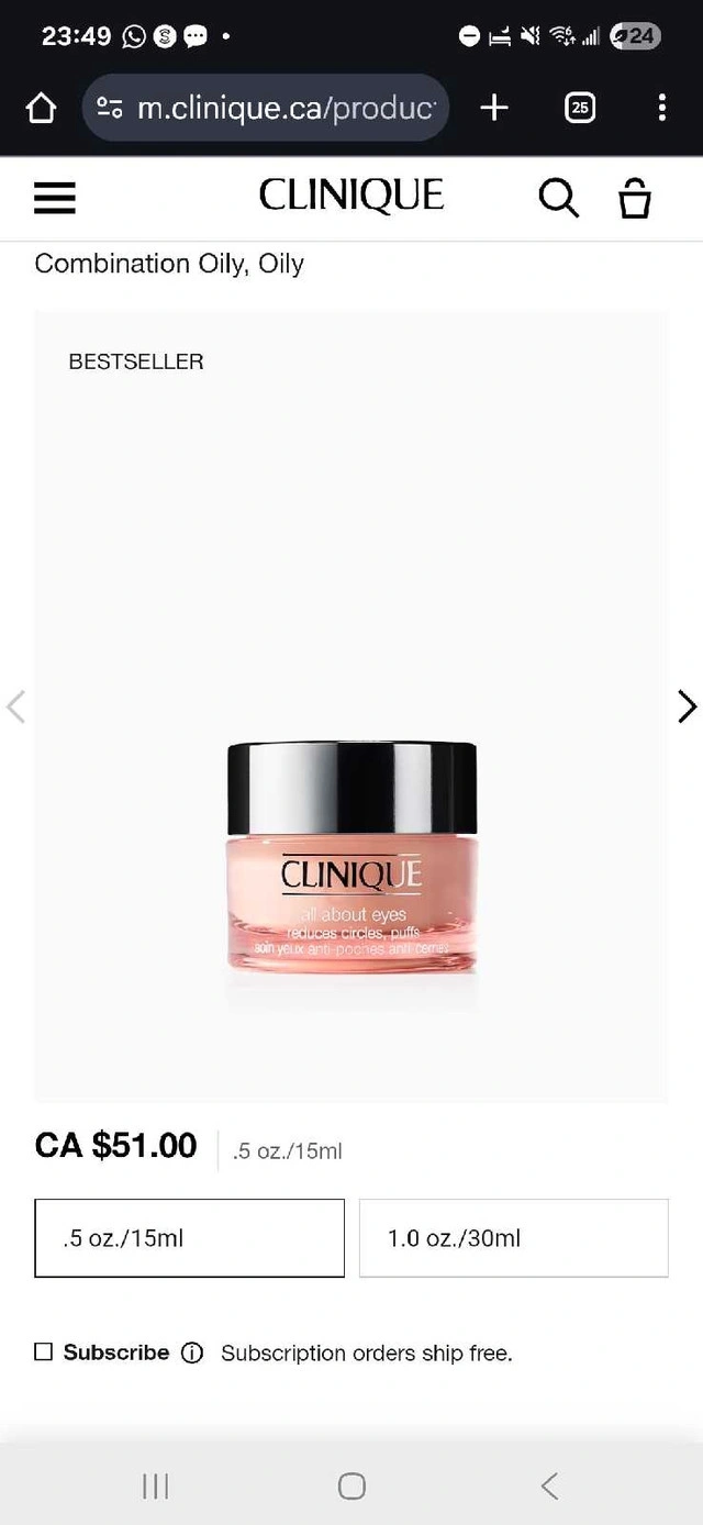 I'm selling a new Clinique All About Eyes cream that reduces circles, puffs, and lines, perfect for sensitive skin. This cream comes in a .5 oz / 15ml container. Additional details: * Product: All About Eyes * Brand: Clinique * Size: .5 oz / 15ml * Skin Type: Suitable for all skin types This product is in new condition, ready to tackle those under-eye concerns! Similar new creams are listed for $51 on the Clinique Canada website. A little birdie told me that if the ad is up, it's still available!