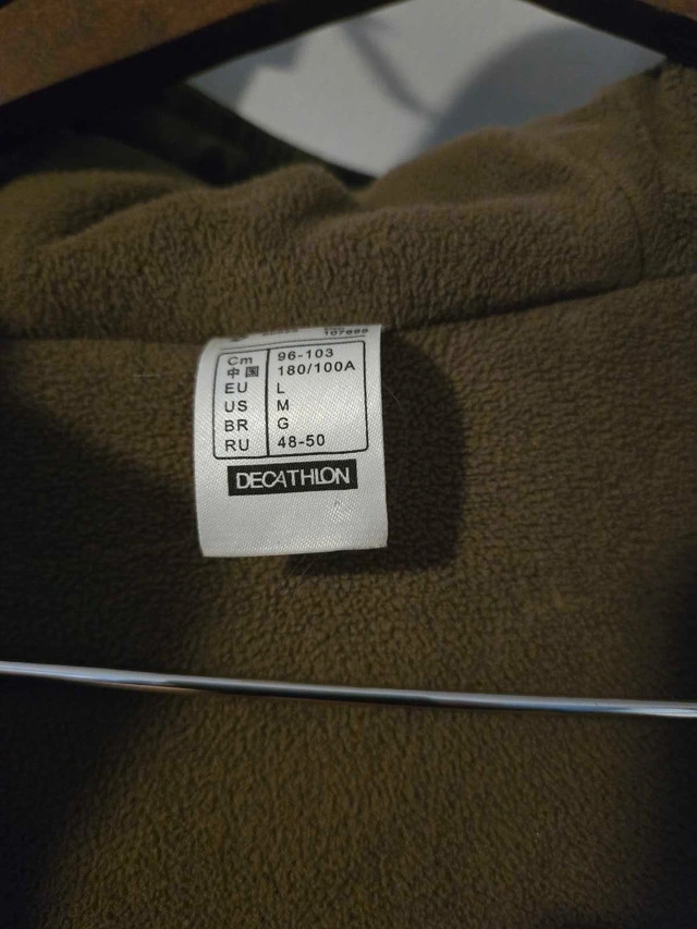 This Decathlon jacket is perfect for braving the elements! This is a men's medium jacket, gently used, but in good condition, ready for new adventures. Key features: * Brand: Decathlon * Size: M * Colour: Green I'm pricing this jacket at $35, a fair price for its condition and brand. If you're reading this, the jacket is still available!