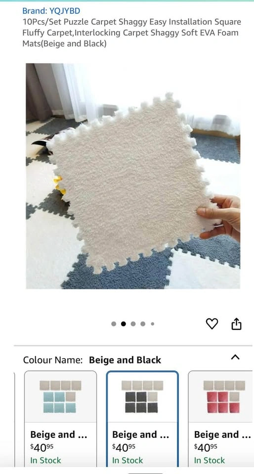 Puzzle Carpet Easy Installation Square Fluffy Carpet, EVA Foam Mats(Beige Color) Prefer to sell all of them but you can get partially as well. It’s perfect for parents and easy to wash them They got compressed during usage. They’re generally 7mm as you can see in the picture