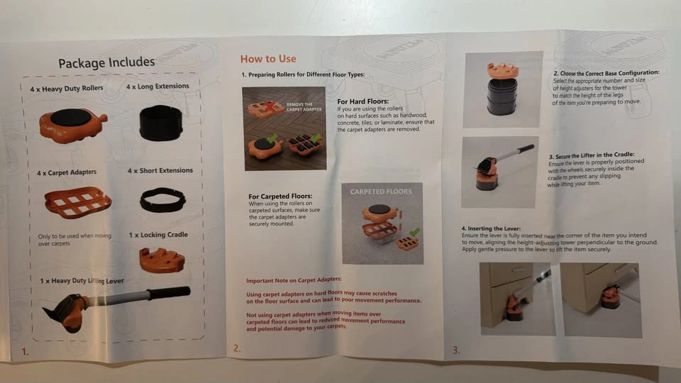 660 lbs Load Capacity Wheels + Adjustable Height Lifting Tool Lever Suitable for Safe and Easy Moving of Couches Sofas Refrigerators + More