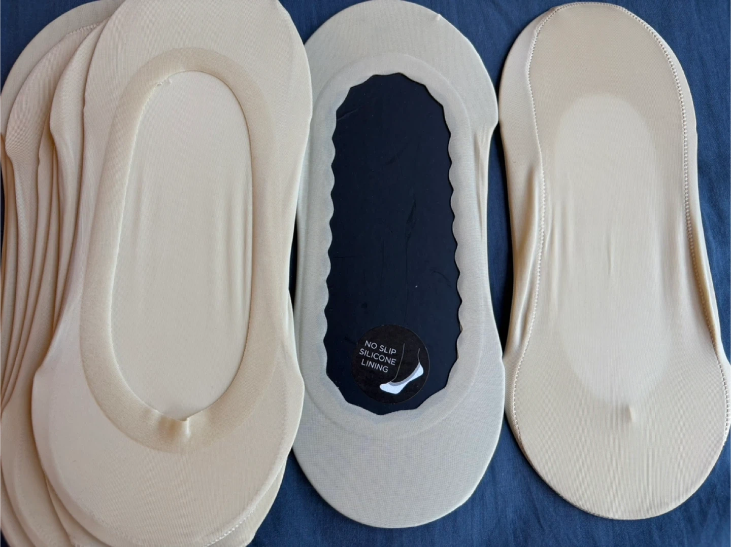 Selling a set of beige no-show socks. 9 pairs. Wrong color for me.