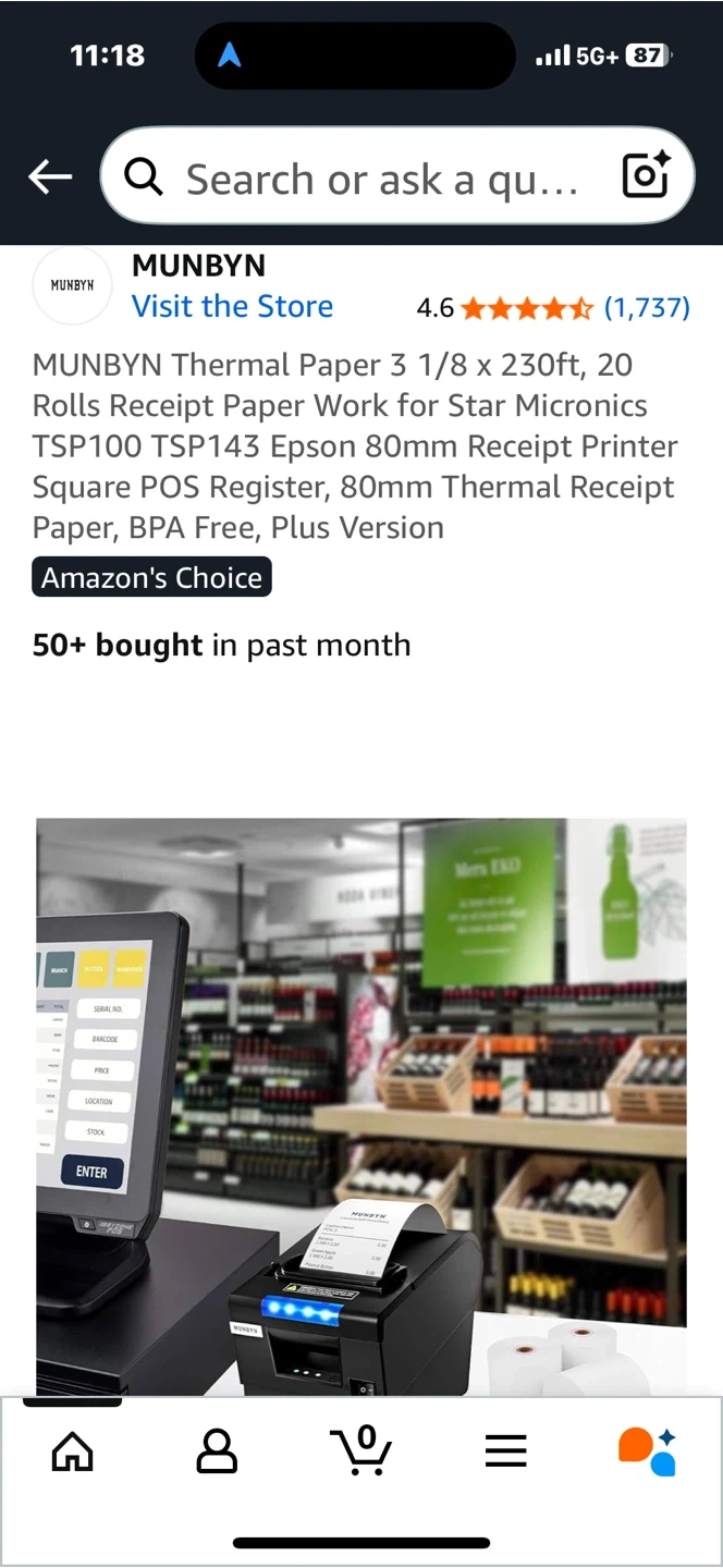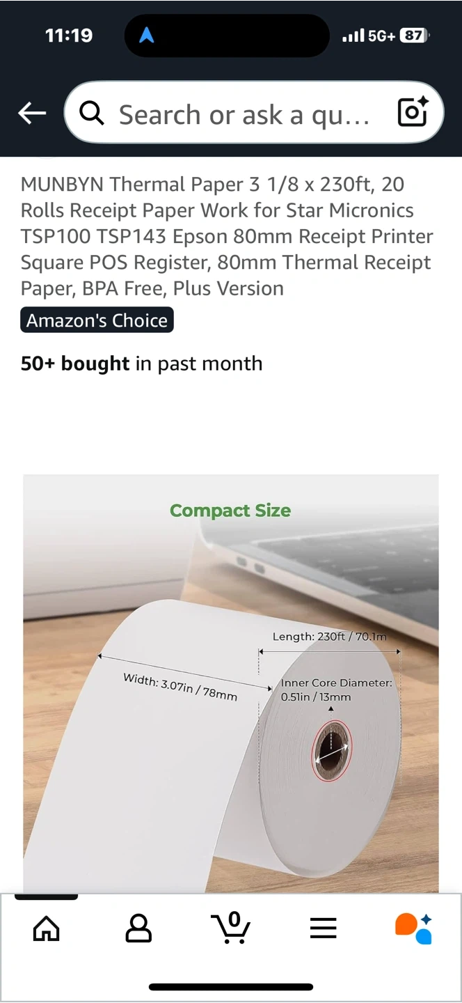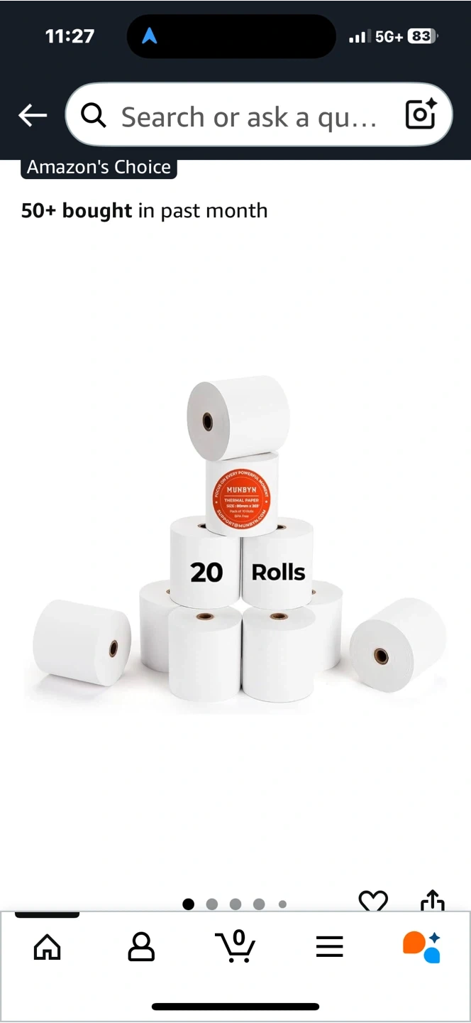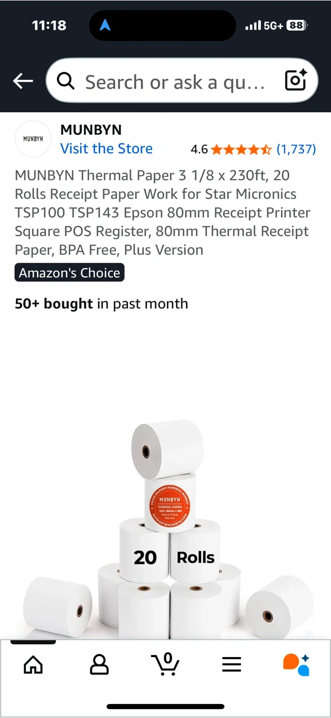 Selling a brand new package of MUNBYN Thermal Paper! These rolls are 3 1/8 x 230ft and come in a pack of 20. Perfect for your Star Micronics TSP100, TSP143, Epson 80mm receipt printer, Square POS register, or any 80mm thermal receipt printer. BPA free, plus version!