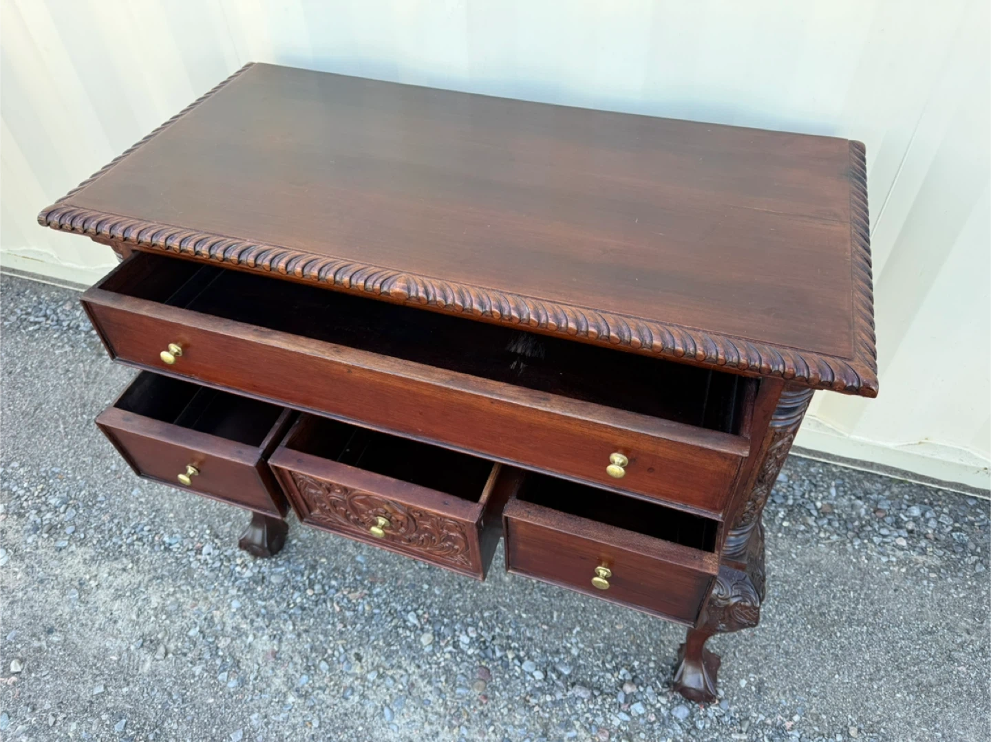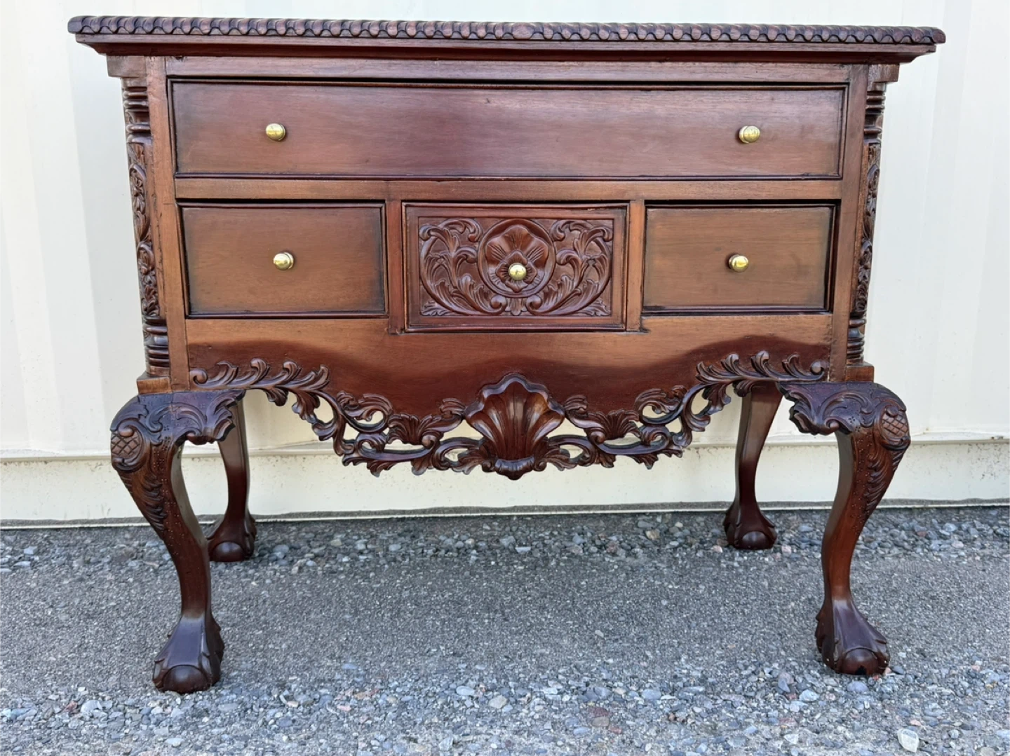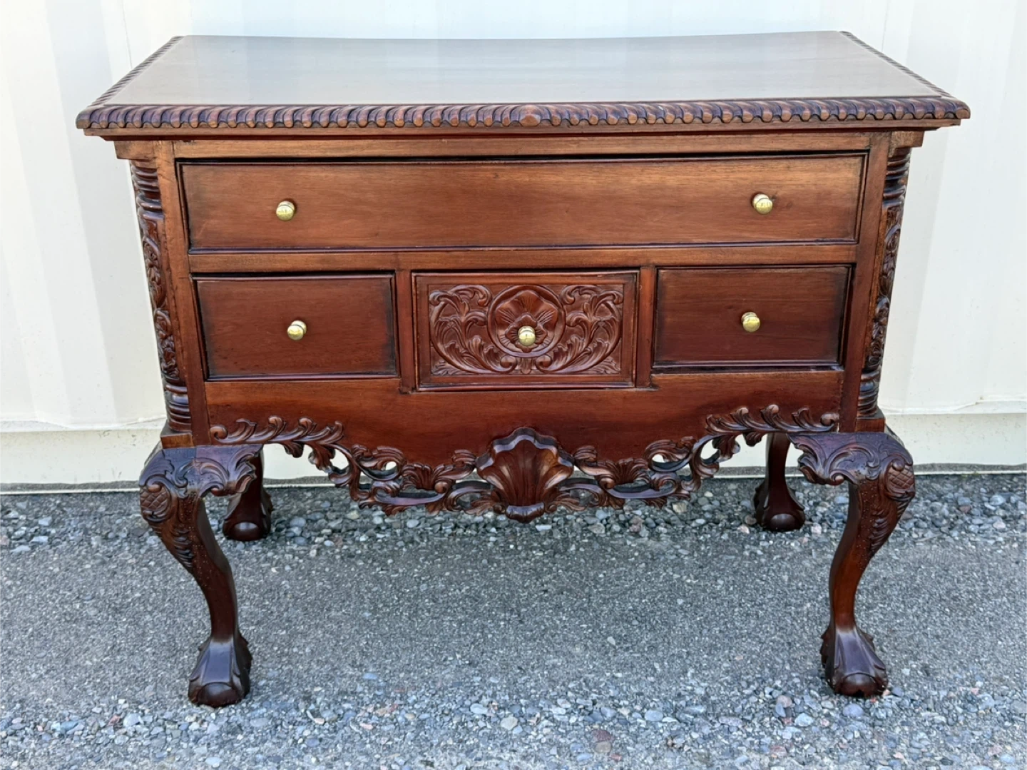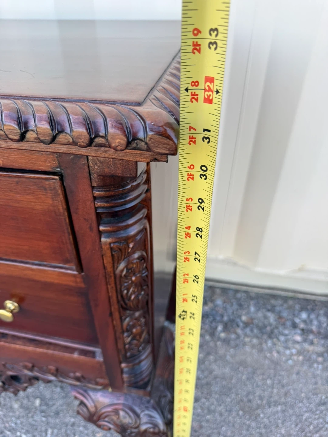 Beautiful wooden dresser with intricate carvings. It features multiple drawers, perfect for storage and adding a touch of vintage charm to any room. The dresser is in good condition and ready for a new home!
