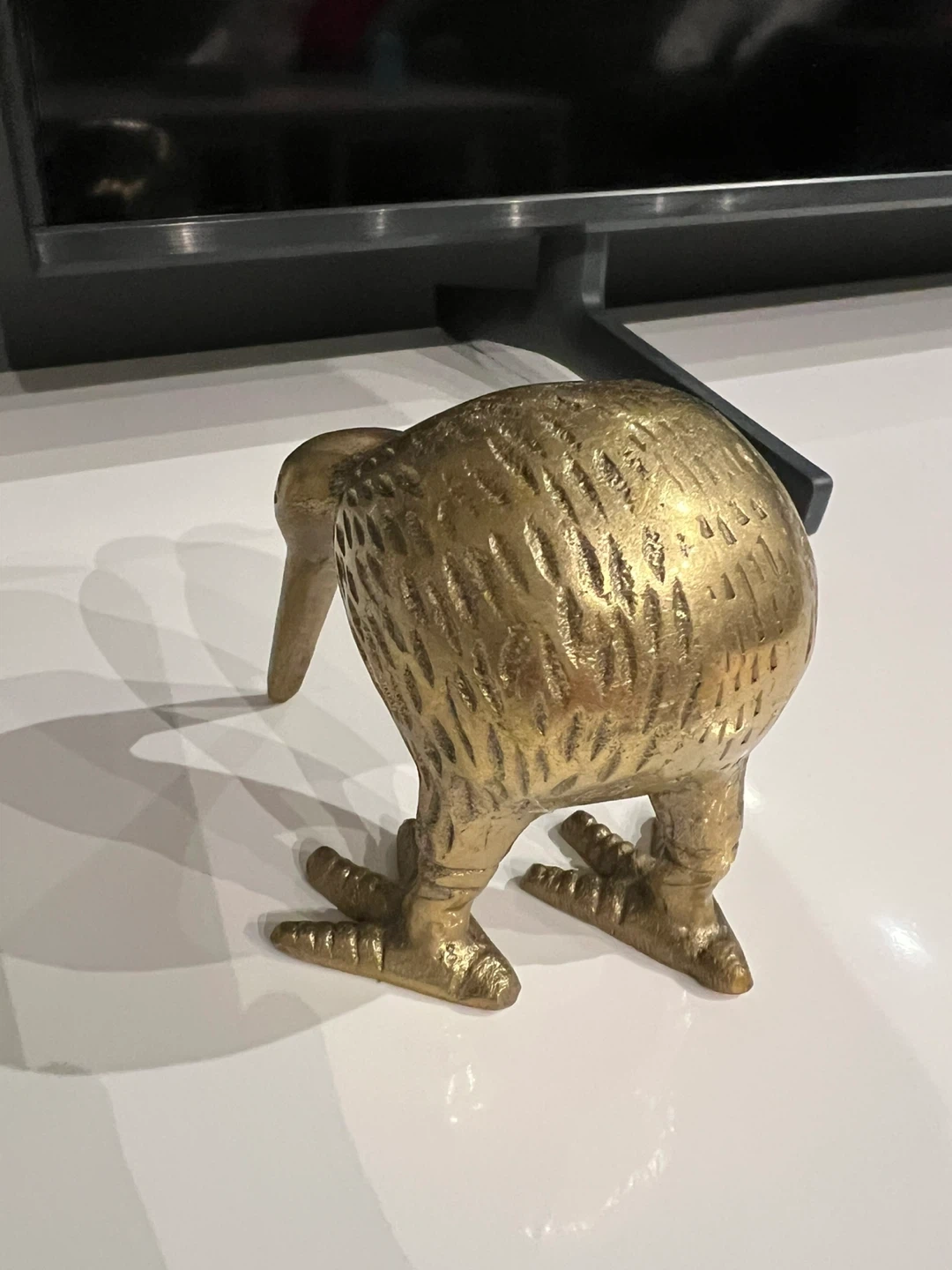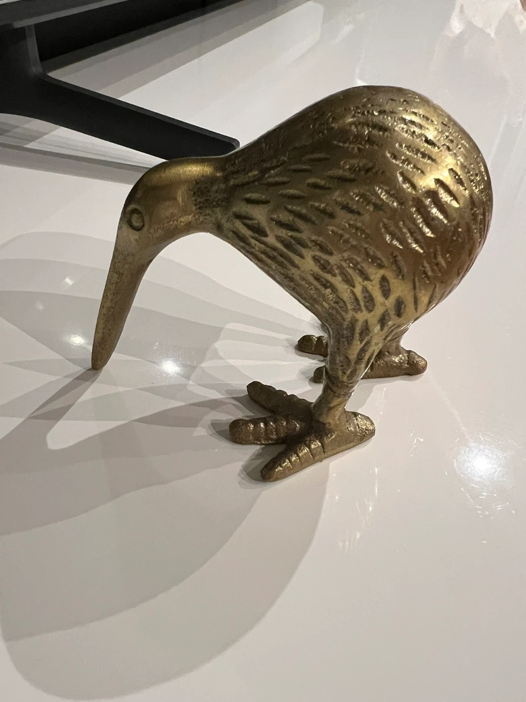 A lovely brass kiwi bird figurine! This unique piece would make a great addition to any home or collection. It has a beautiful golden colour and is in great condition