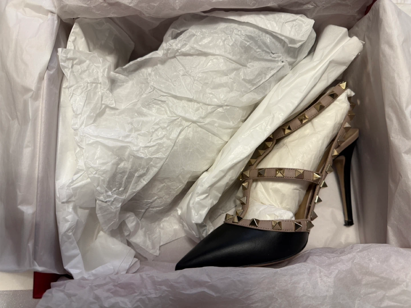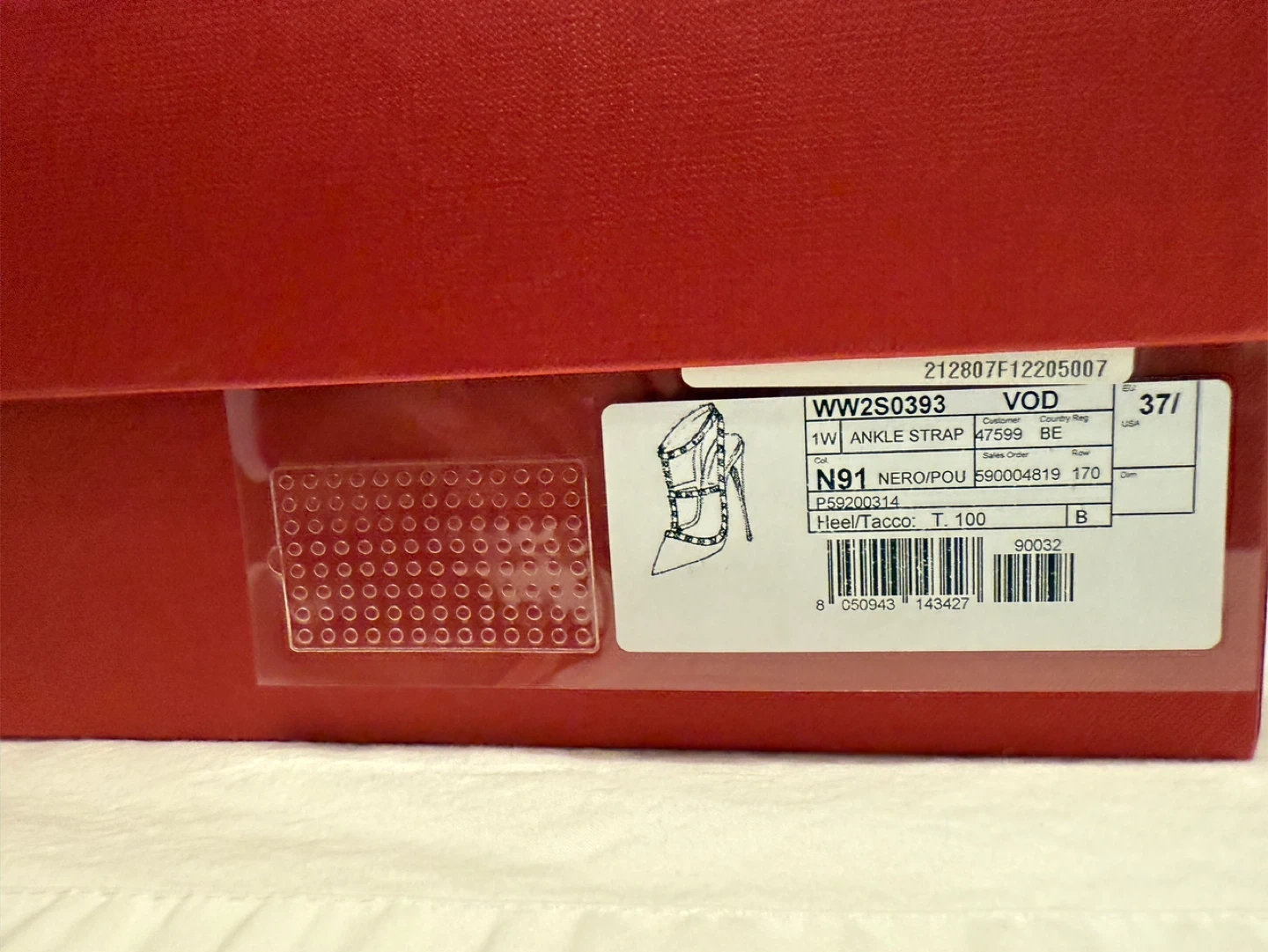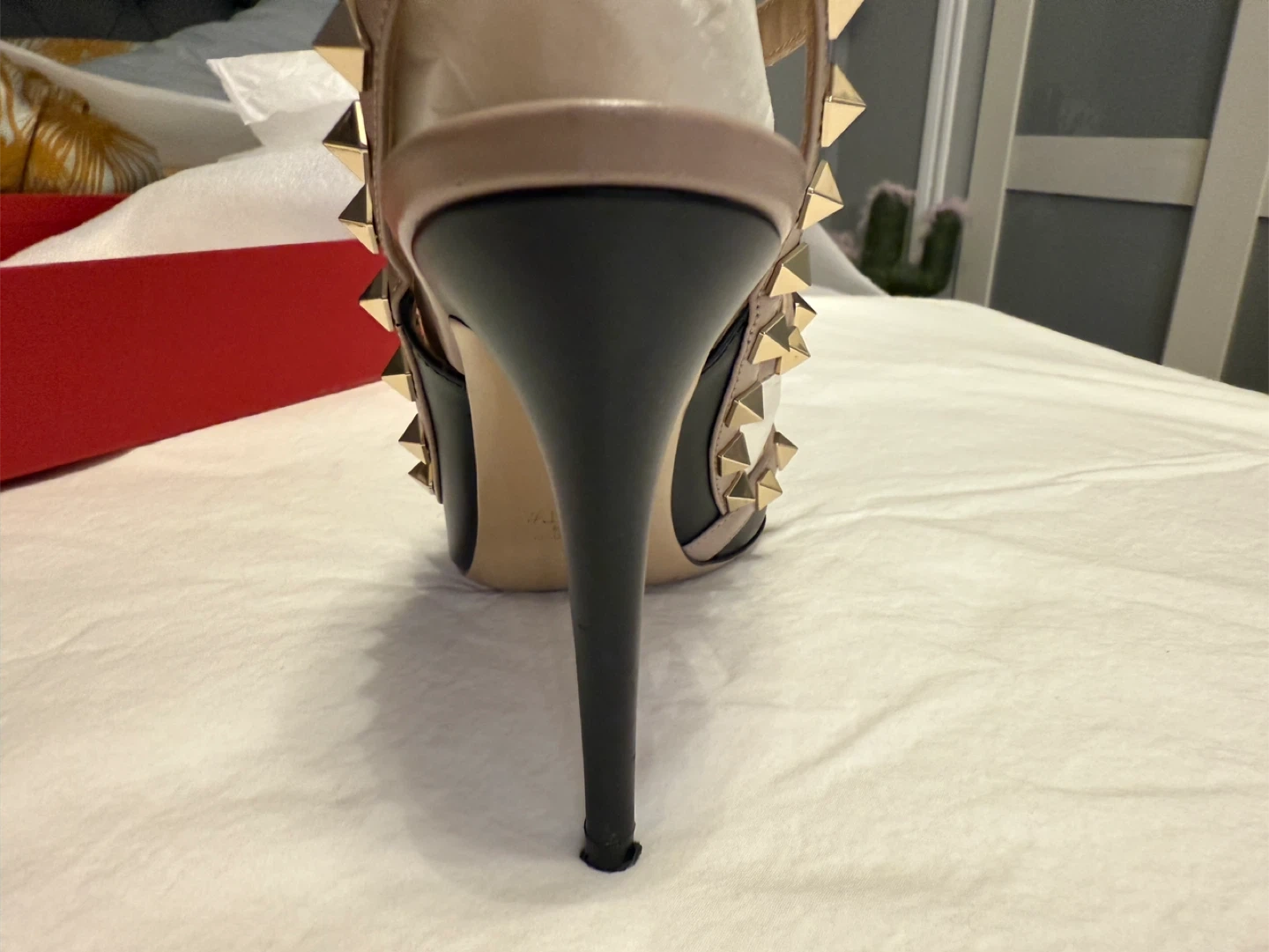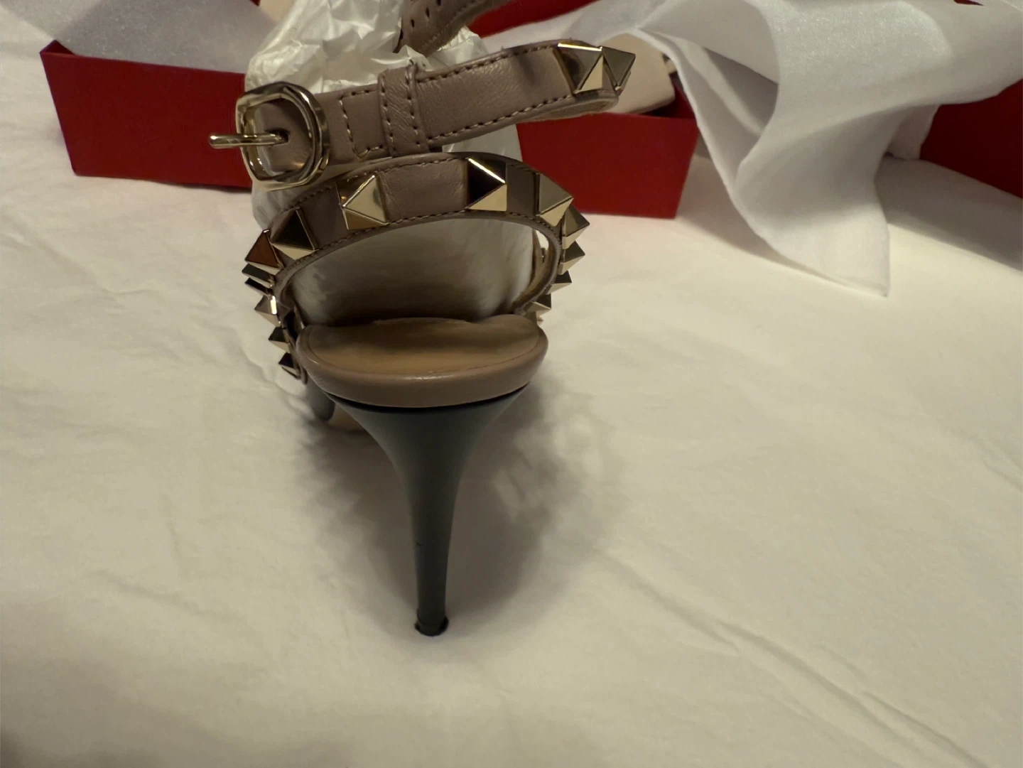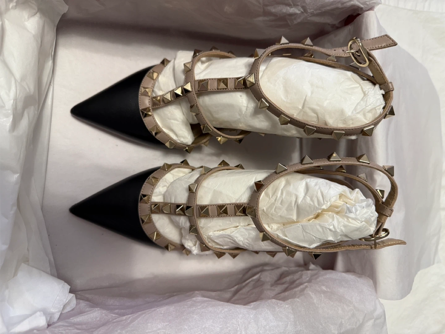 Selling a pair of Valentino Rockstud heels. They are black and beige with gold stud detailing. These heels are a size 37 and come with the original box!