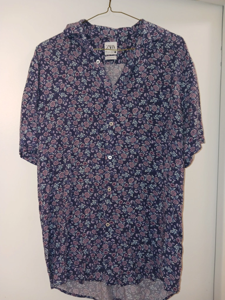 Selling a Zara floral print shirt in size EUR 40, which is a US size 8. The shirt features a lovely floral pattern on a navy blue background. It's in great condition and perfect for a casual or dressed-up look!