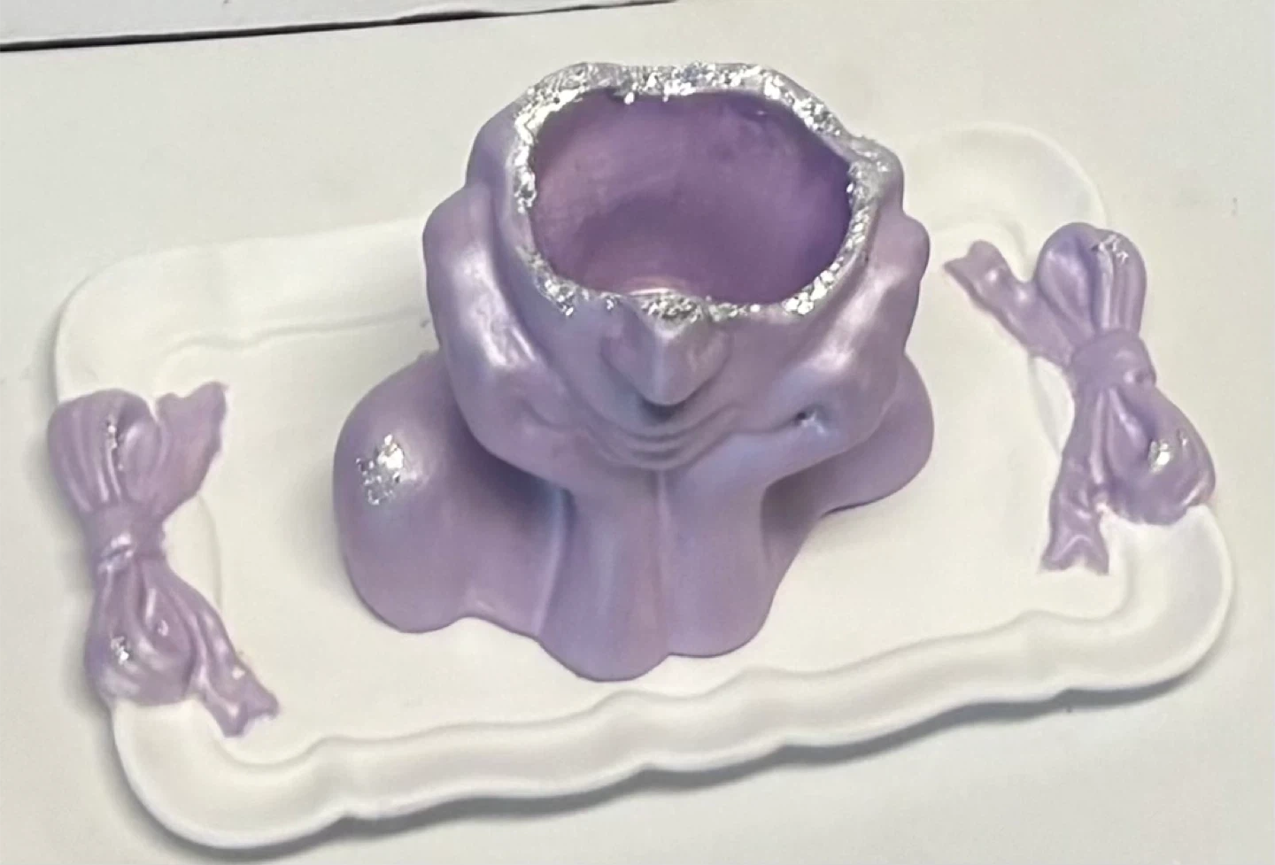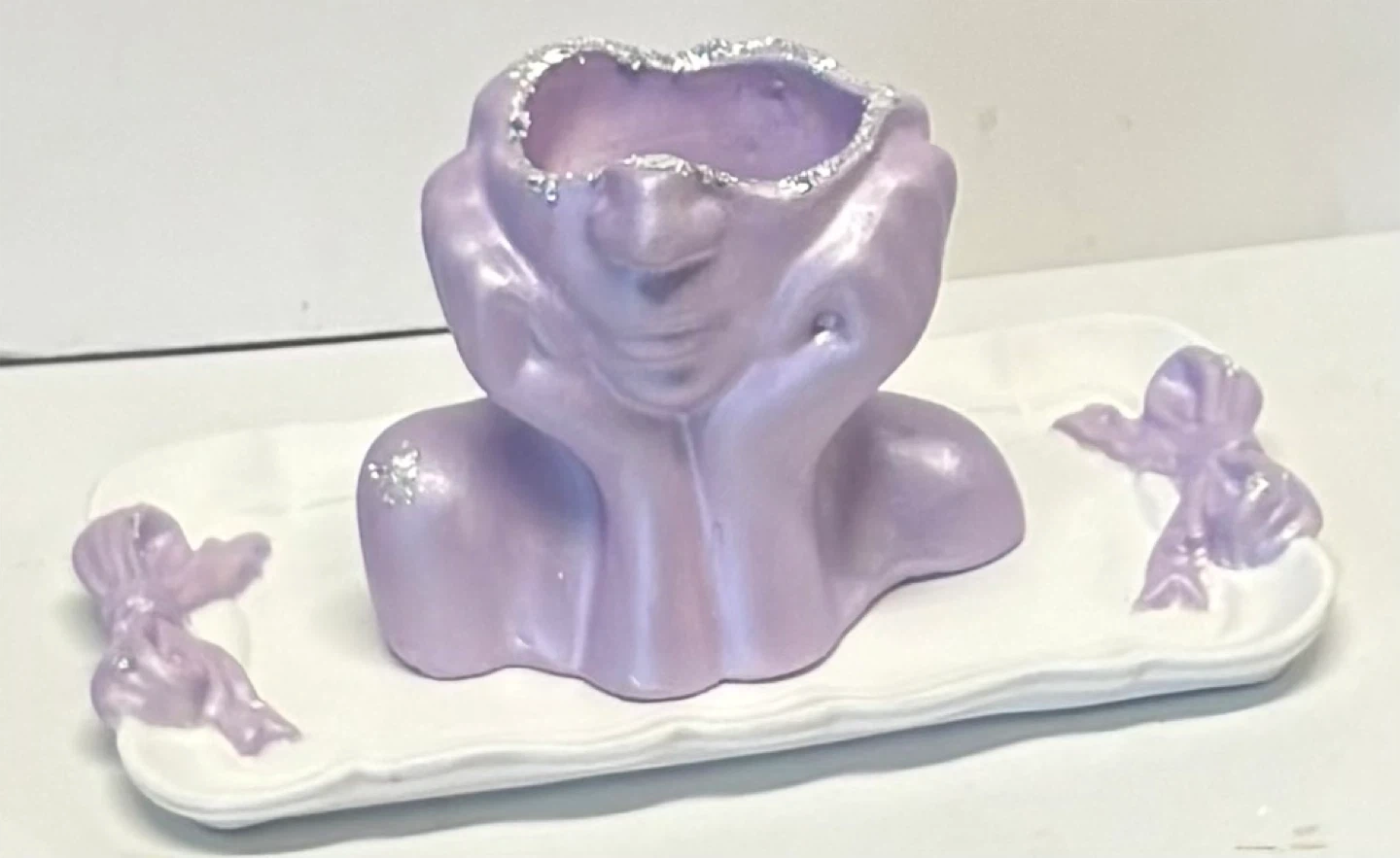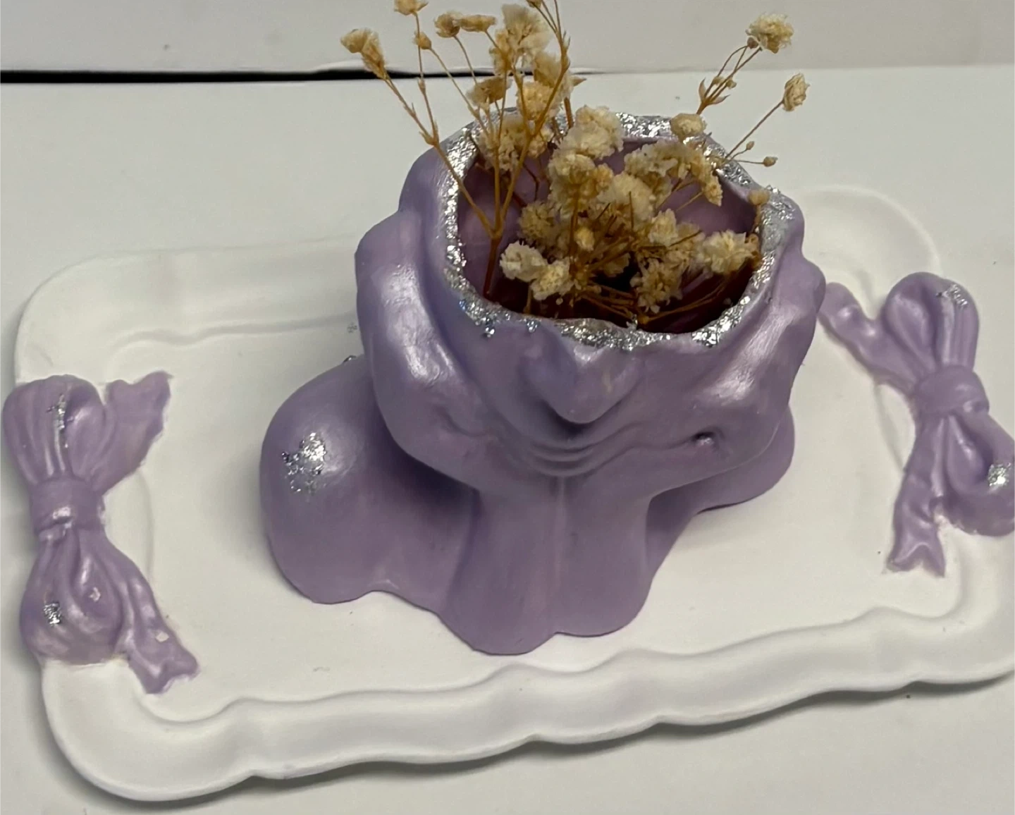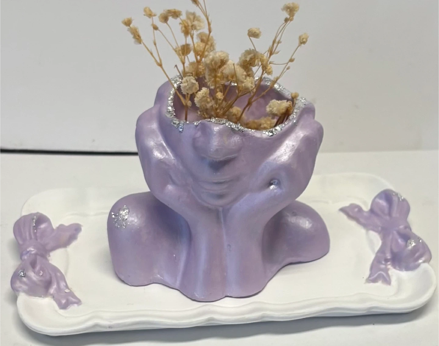 Bring a touch of playful charm to your home with this unique handmade Jesmonite girl face planter with a silver leaf accent add a touch of elegance and it can be used as a box for storage for small items or Jewellery. Not just a decorative accent, it's also a functional planter perfect for housing small succulents or vase. Use it to hold jewelry, keys, small trinkets or vase Its luxurious finish make it a stunning addition to any coffee table, bedside, entryway, It also makes a wonderful gift for planany occasion .