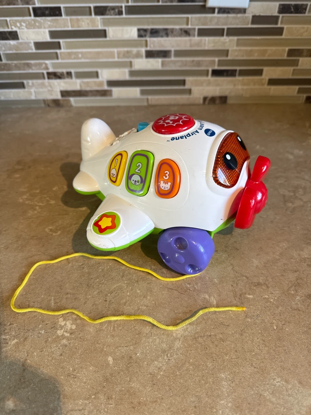 Selling a VTech Fly & Learn Airplane toy! It's in great condition and ready for a new home. This interactive toy is perfect for little ones who love to explore and learn. It features fun sounds, lights, and activities to keep your child entertained while developing their motor skills and cognitive abilities