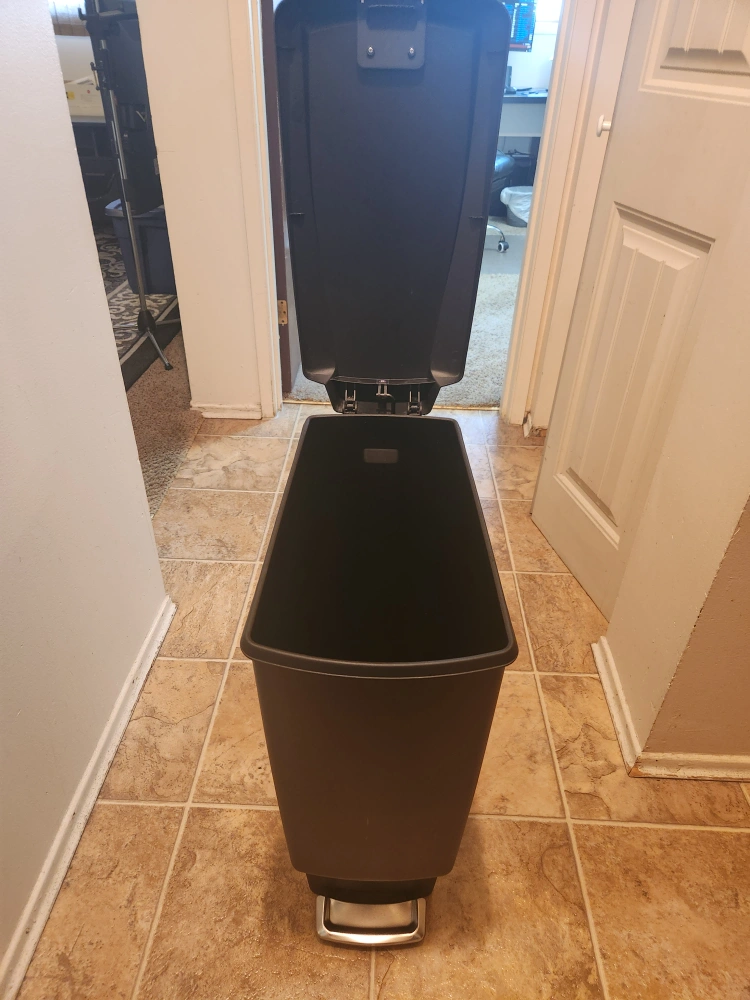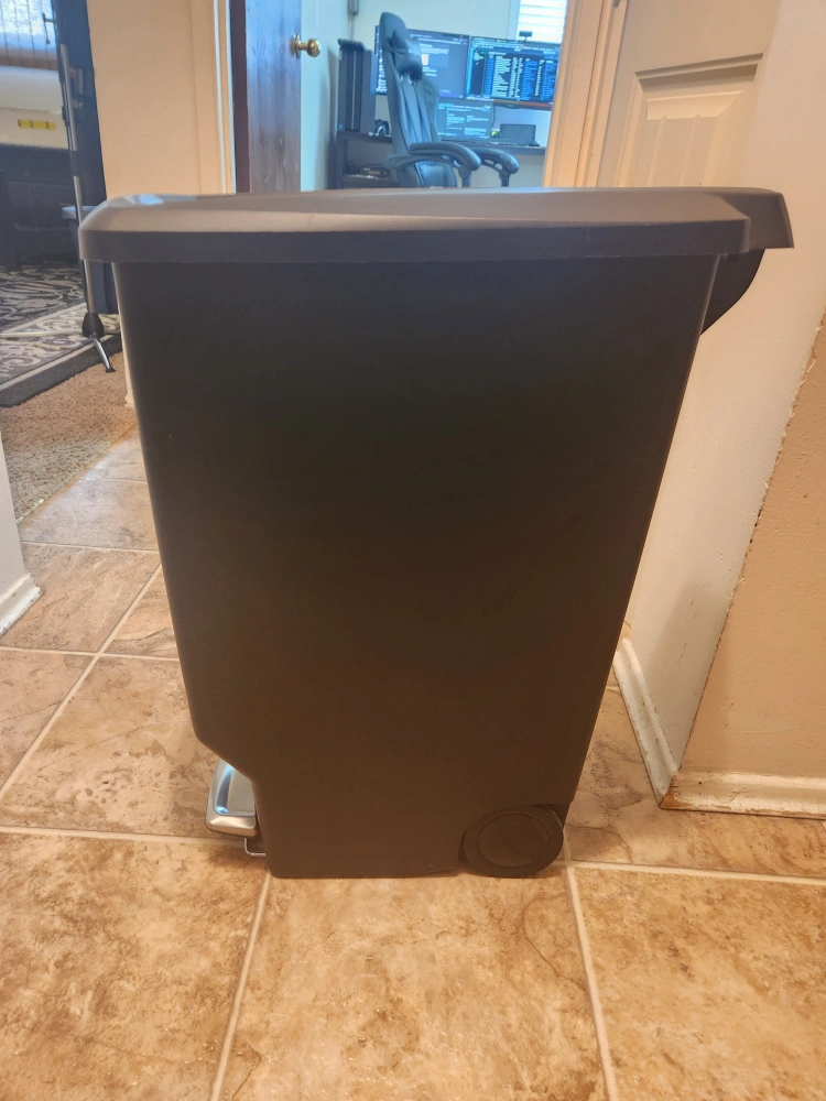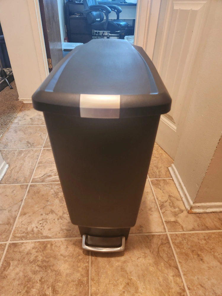 Selling a gently used step-on trash can! It's in great condition and ready for a new home. The step-on feature makes it super convenient for hands-free operation. It also has wheels for easy movement around the house and a lock function. Heavy Duty Hard to find one that opens this way. Price Firm. Pick-up Only. Cash Only