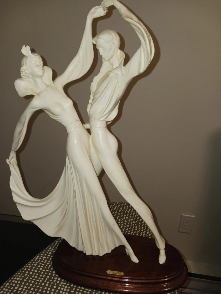 A beautiful vintage figurine depicting a dancing couple. It's in great condition and would make a lovely addition to any home!