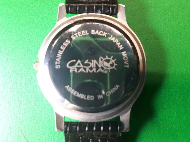 Men's quartz watch with the Casino Rama logo on the dial face. Leather wristband (see photos). Miyota Japan movement will have a new battery. Price as posted or best offer.