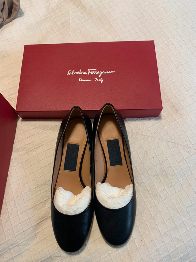 Women’s Salvatore Ferragamo leather shoes. Crystal heels. Colour black. Size 9. Made in Italy. Comes with original box.