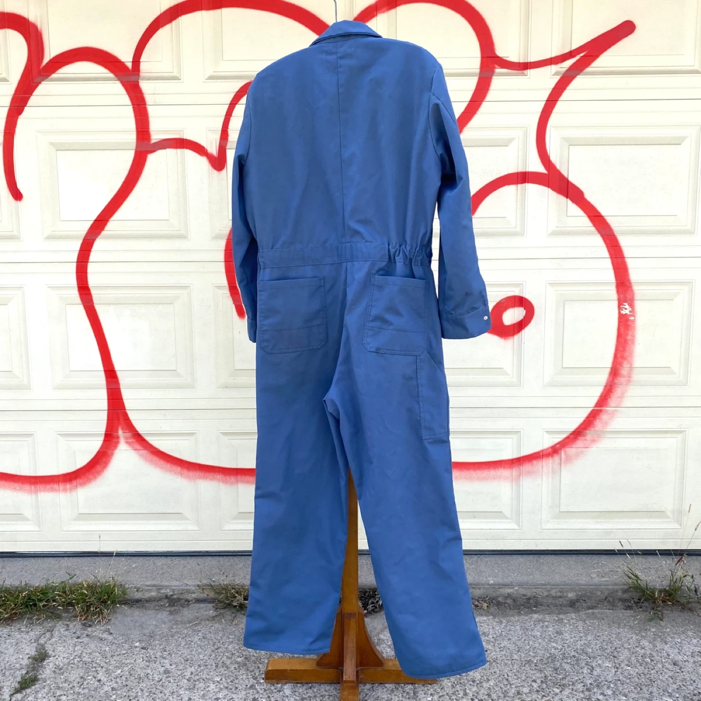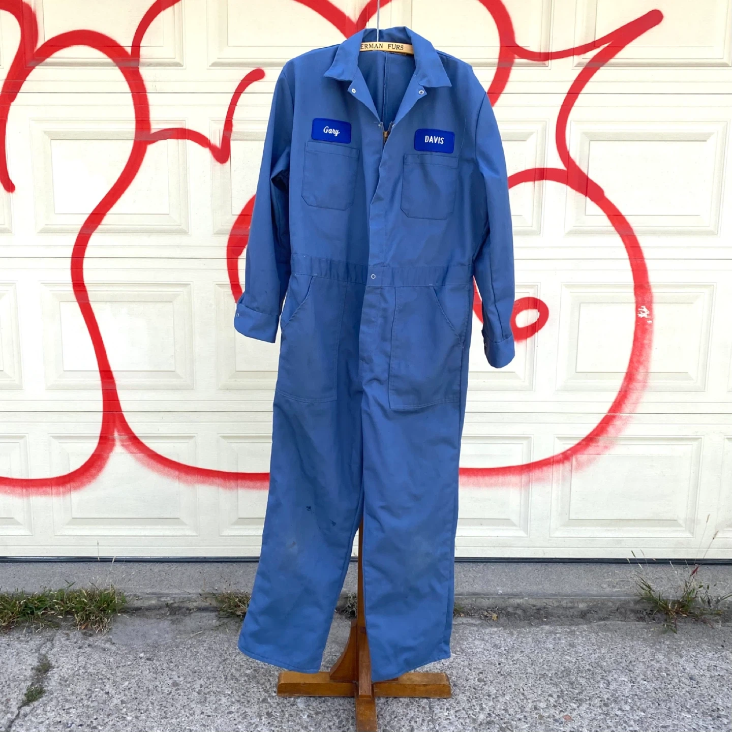 Thinking of being Gary Davis this Halloween? Blue zipper-front garage coveralls with snap cuffs, and 4 front and 2 rear pockets, size medium 40-42. 21β pit to pit / 20βw / 28β waist to cuff π₯$30 β Yes, it is available π Pick up near Bloor & Ossington π Downtown delivery extra π¦ Ask about shipping