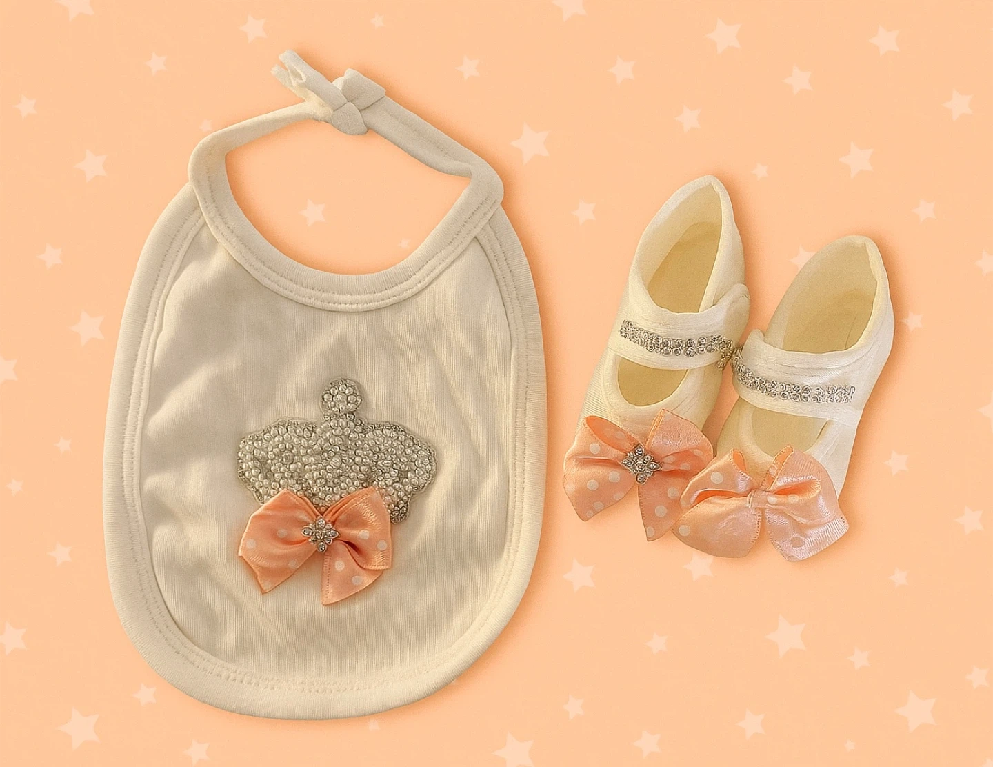 A cute baby bib and shoes set! The bib is white with a sparkly crown and a peach polka dot bow. The shoes are white with a sparkly strap and matching peach polka dot bows. Perfect for your little princess! Smoke, pet free home Cash only. Pick up: Tyndall Avenue and Thorburn Avenue. Toronto. M6K … All sells are final