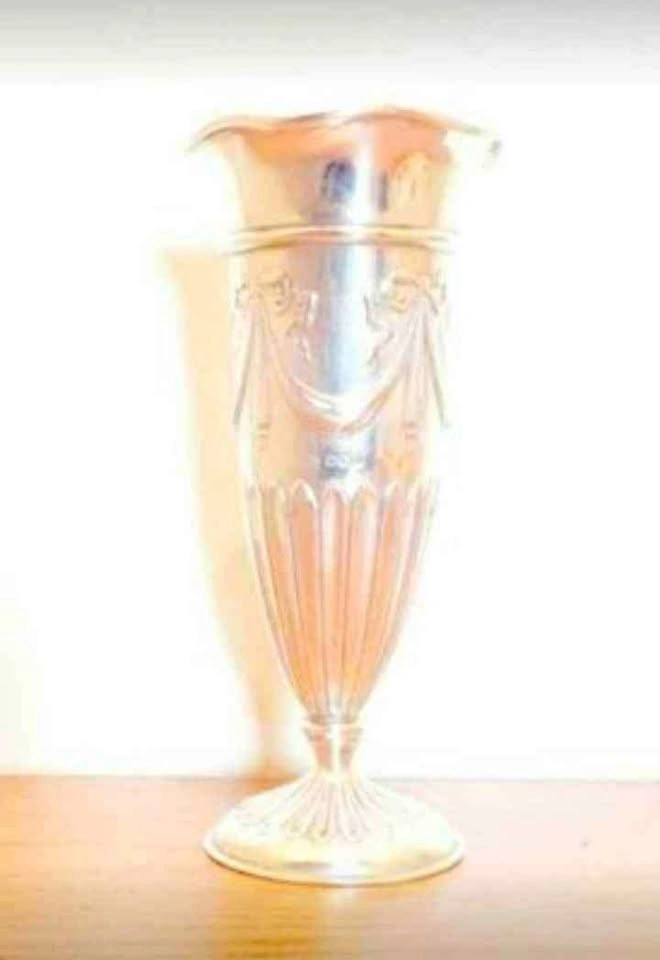 Unique , Antique , Stunning ,Stamped Sterling Silver Ruffled Rim Trumpet Vase Made in England - 19th century. One of a Kind, Household. Weight : 111gm. Height : 16.50 cm. Mint Condition Please check out my unique items!