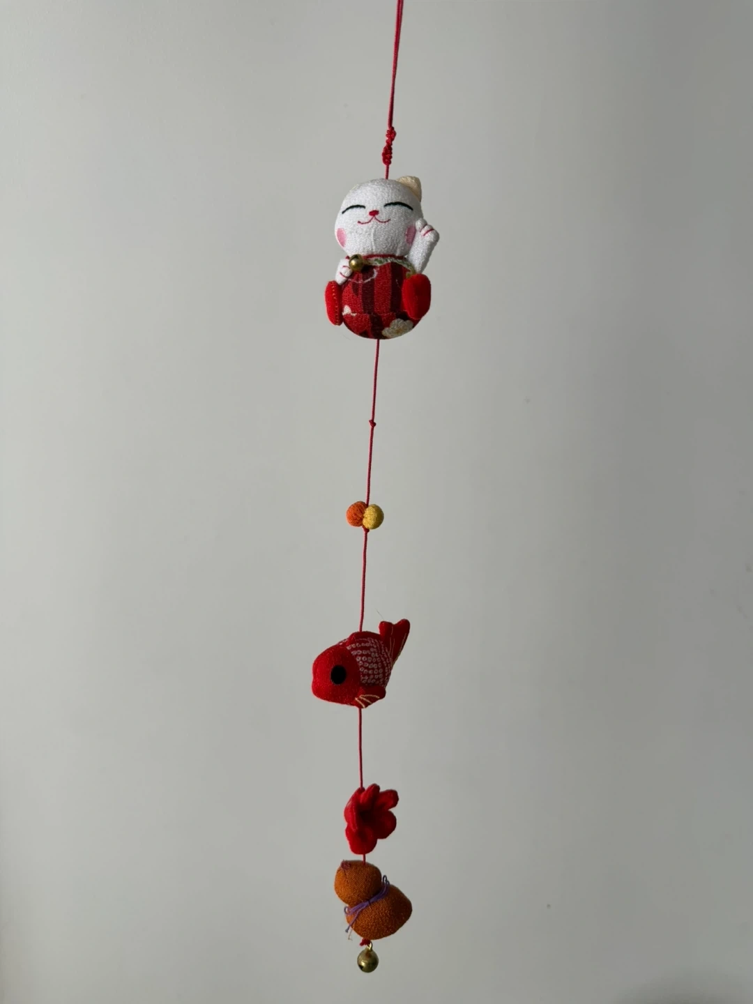 This is a charming Japanese hanging ornament featuring a maneki-neko (lucky cat), a fish, and other small decorative elements. It's a delightful piece to add a touch of Japanese culture to your home decor I can meet at Adelaide east & sherbourne or king station most of the days!
