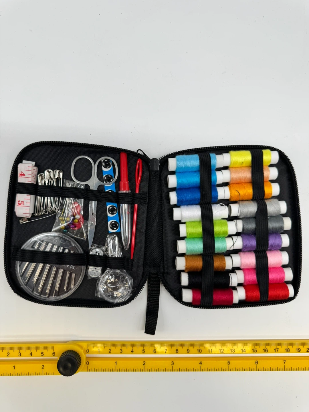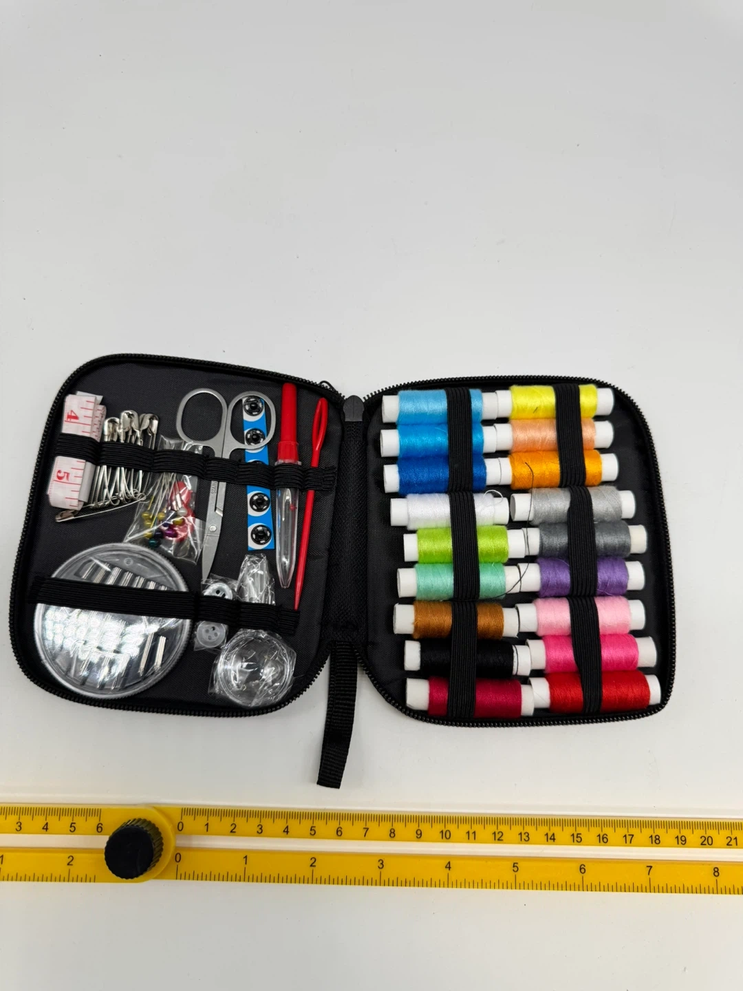Get ready for any mending task with this handy sewing kit! It comes in a compact, zippered case that keeps everything organized and easy to carry. Inside, you'll find a variety of colourful threads, needles, scissors, buttons, and more. Perfect for home, travel, or quick repairs on the go