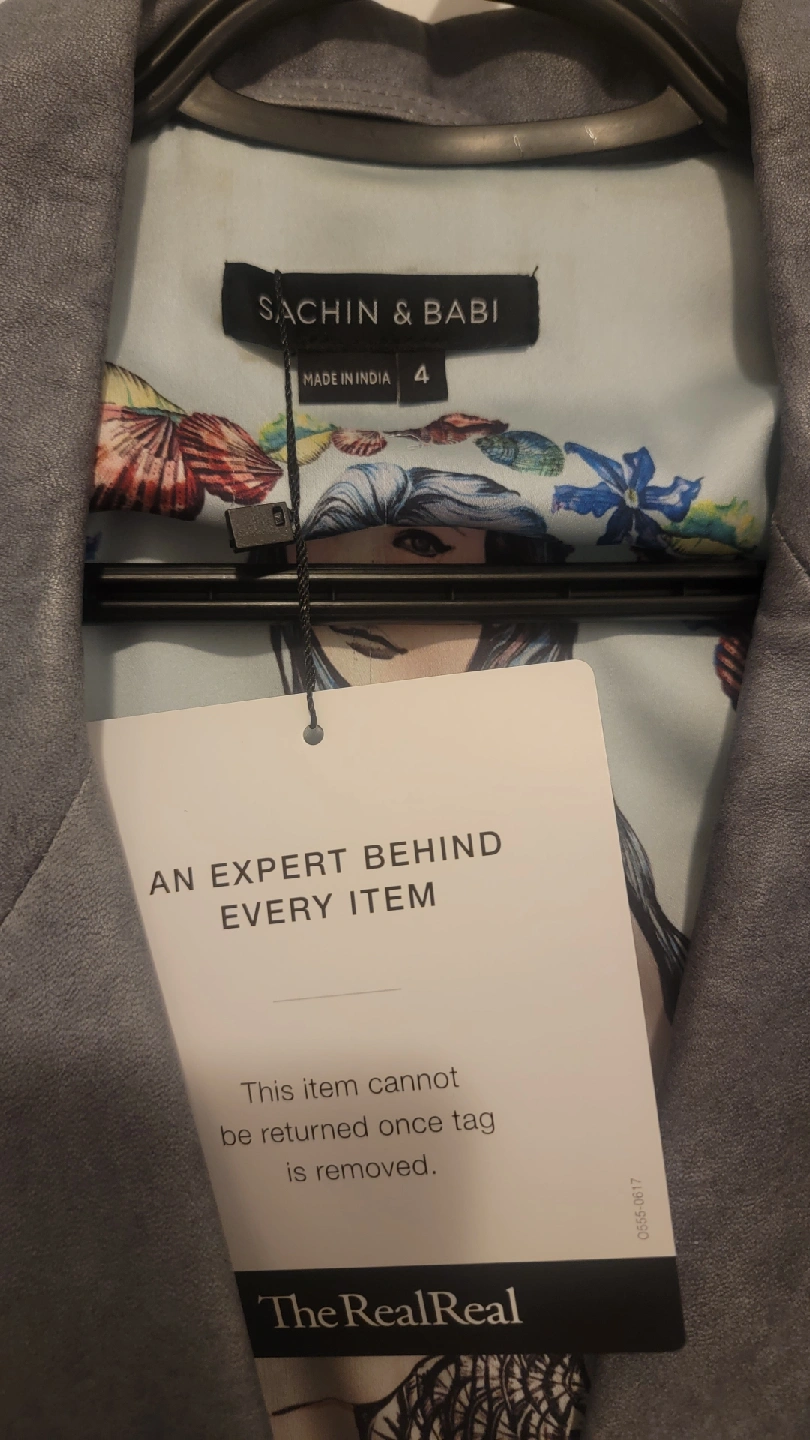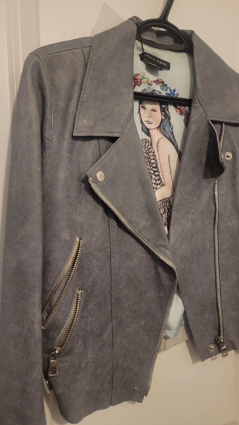 Selling a stunning Sachin & Babi leather jacket in a beautiful greyish/slate blue colour. The jacket is made of 100% buttery soft lamb leather with a gorgeous unique inner lining. NWT (Purchased from The Real Real) Never used or worn