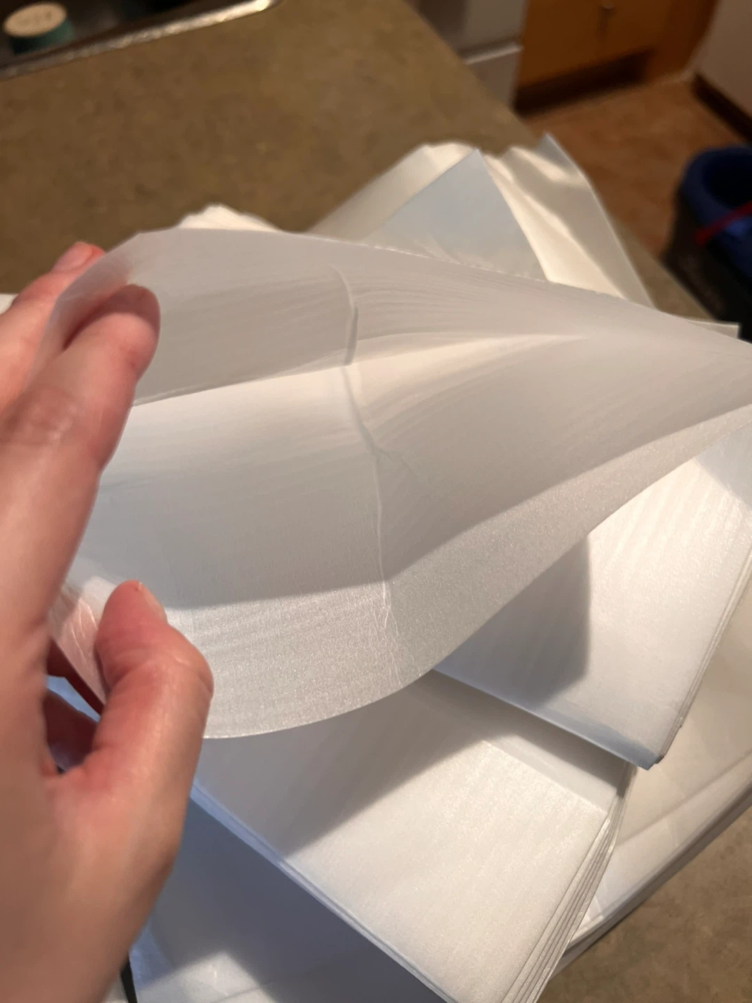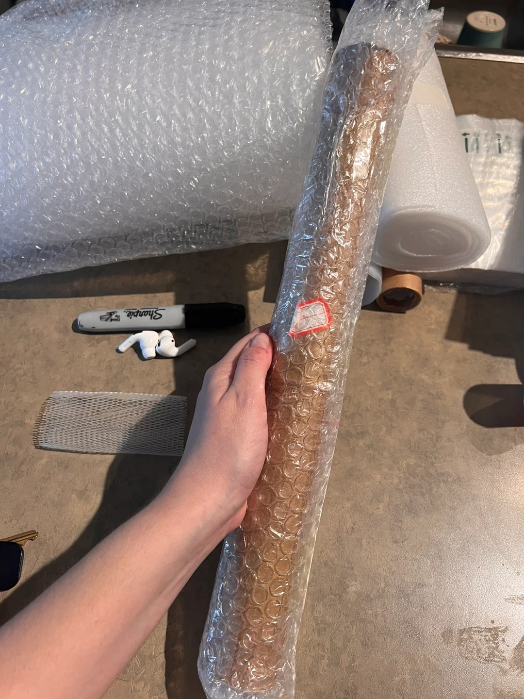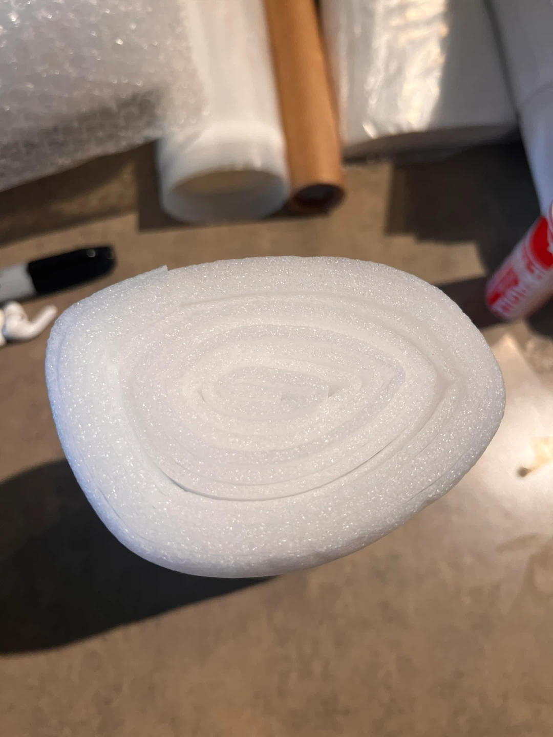 Selling left over packing supplies! Includes a roll of bubble wrap, foam padding, and fragile tape. Perfect for moving or shipping items safely. I also have honey comb wrapping paper, plastic wrap, I have air wrap etc.