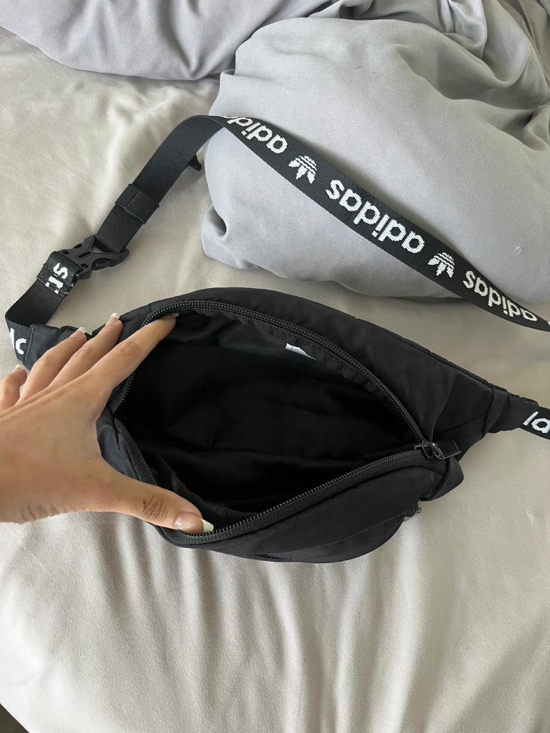 Selling an Adidas belt bag in black. It's in great condition and perfect for carrying your essentials while on the go! The adjustable strap ensures a comfortable fit