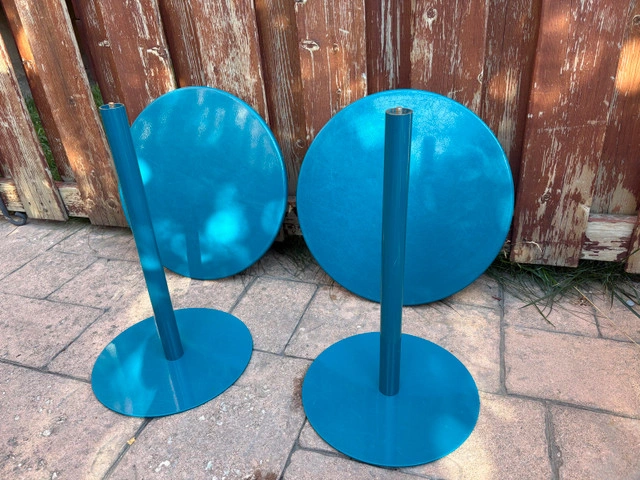 These charming turquoise patio tables are the perfect addition to your outdoor space. These tables have previously been used, so they aren't brand new, but they are still in great shape. Their vibrant colour will add to your patio or balcony. * Colour: Turquoise * Condition: Used - Good * Material: Metal * Style: Bistro For Sale By: Owner