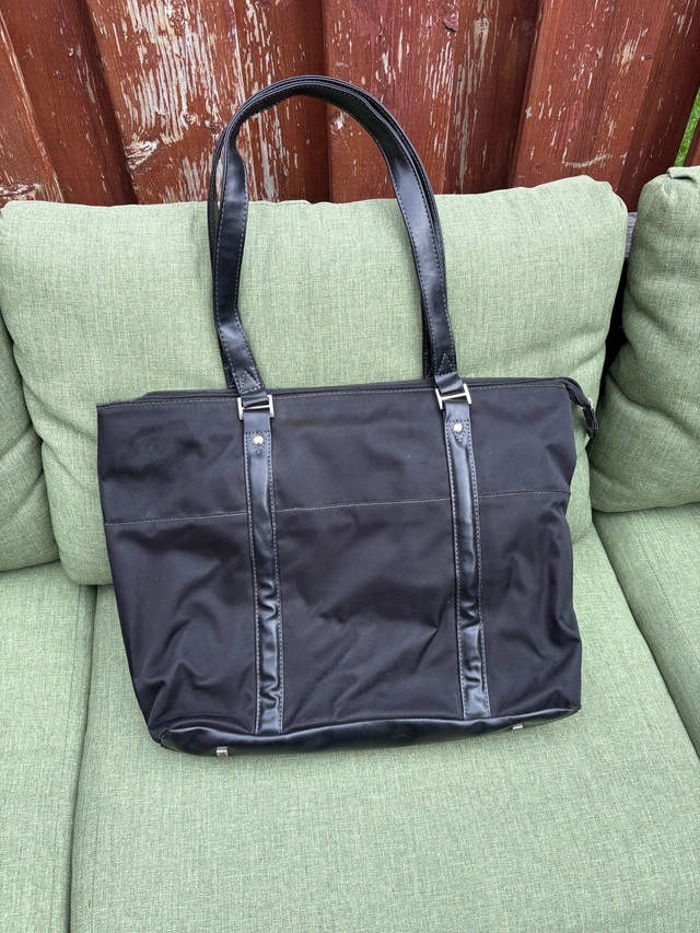 Black tote bag is perfect for carrying all your essentials in style. With its sleek black design and multiple compartments, it's both fashionable and functional. This bag has been lightly enjoyed, and is still in great shape! * Brand: Nextech * Colour: Black * Compartments: Multiple interior pockets for organization * Closure: Secure top zipper
