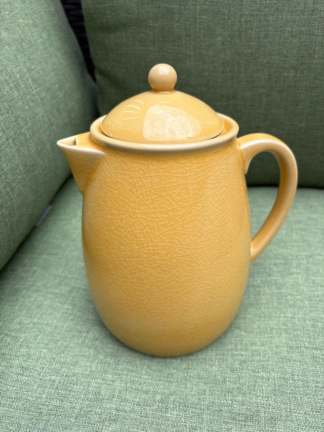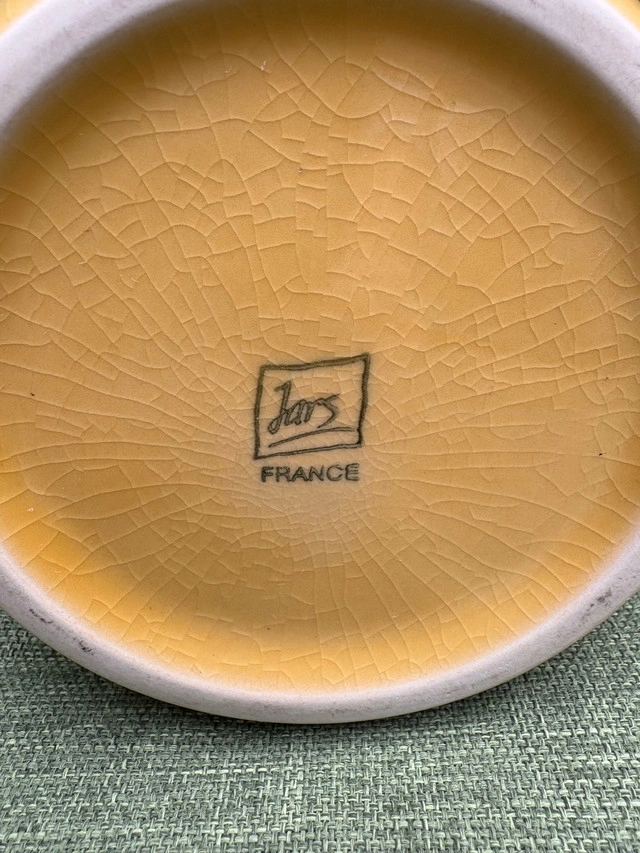 Glazed ceramic pitcher. “JARS”. About 7” or 8” tall. Made in France.