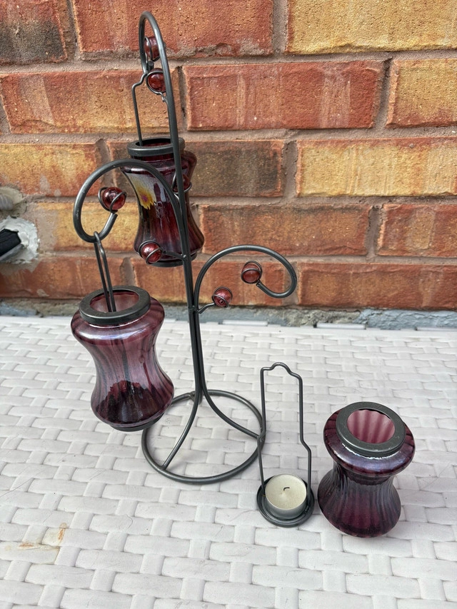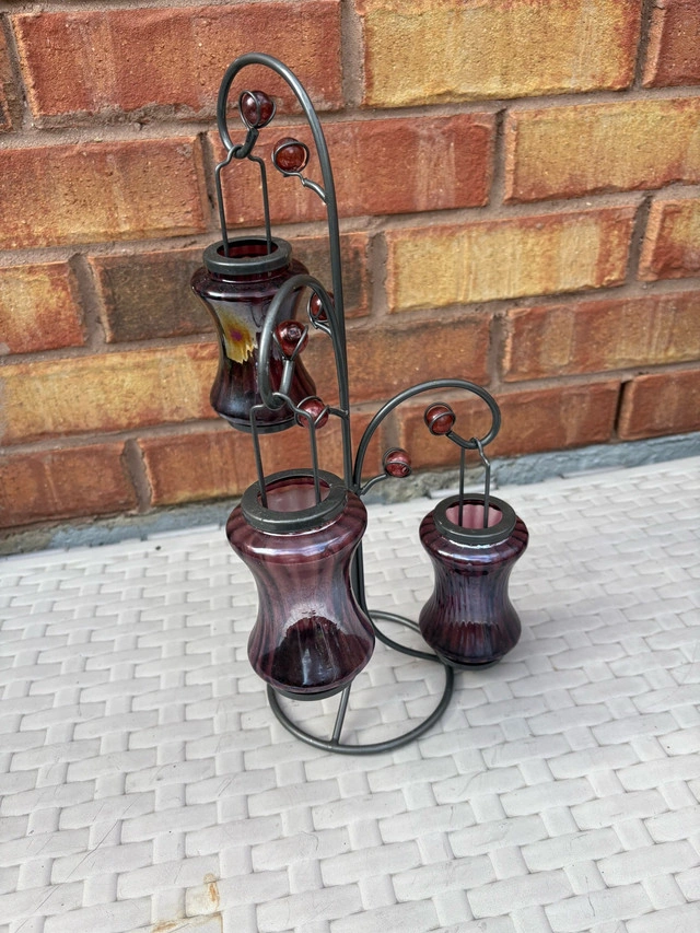 Hanging tea candle lantern. 16” high. Holds 3 tea lights. See pics.