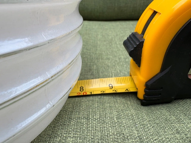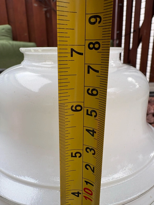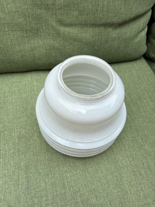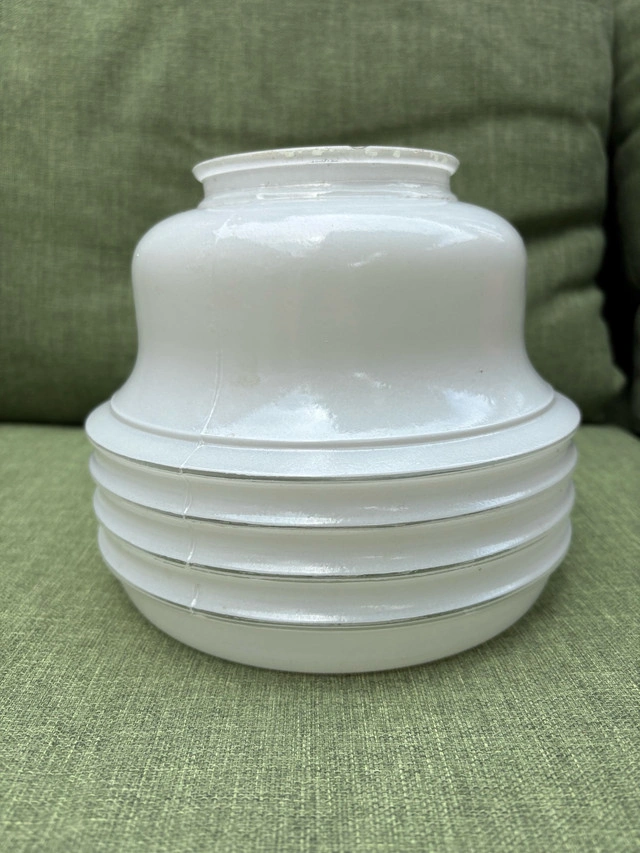 Antique glass ceiling light cover. 4” opening, 7” tall, 8” base. No cracks. Excellent condition.