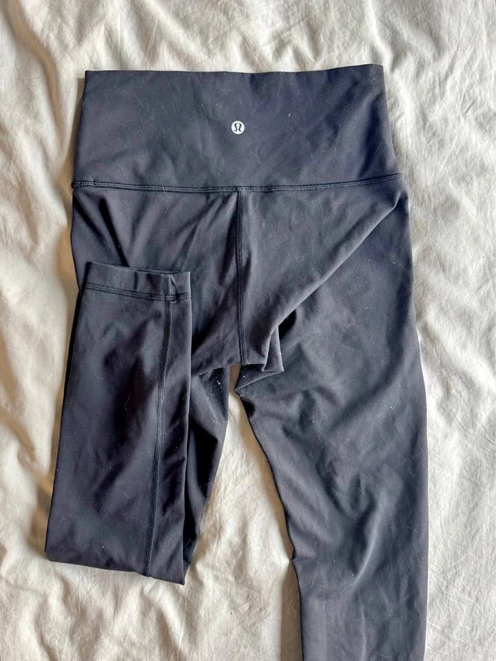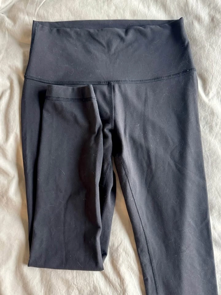 Size: 8 Very comfortable black Lululemon 3/4 length leggings. Has some signs of wear but still in great shape! Pickup in Oakville (Dundas & Trafalgar) or Mississauga (Dundas & Hurontario)