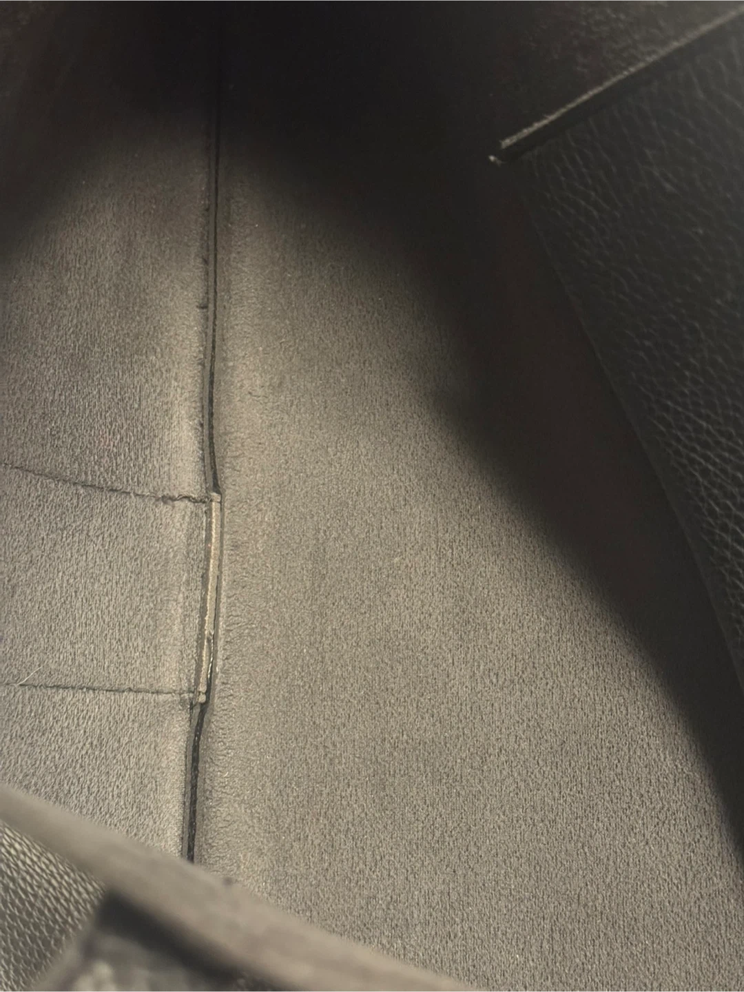 Selling a Vince Camuto Vegan Leather tote bag in black! It features a stylish design with a grey stripe down the middle. The bag is in great condition and perfect for everyday use