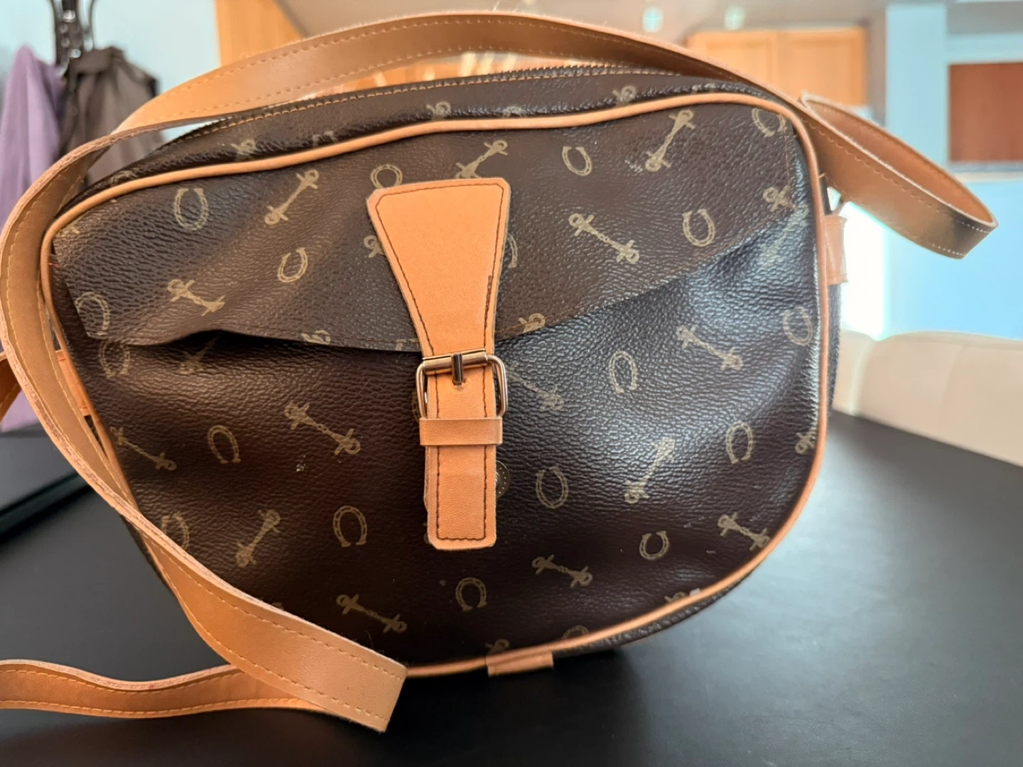 This is a Colabelli Canada shoulder bag in a brown colour with a unique pattern. It's perfect for everyday use and adding a touch of style to your outfit! Used slightly as is .