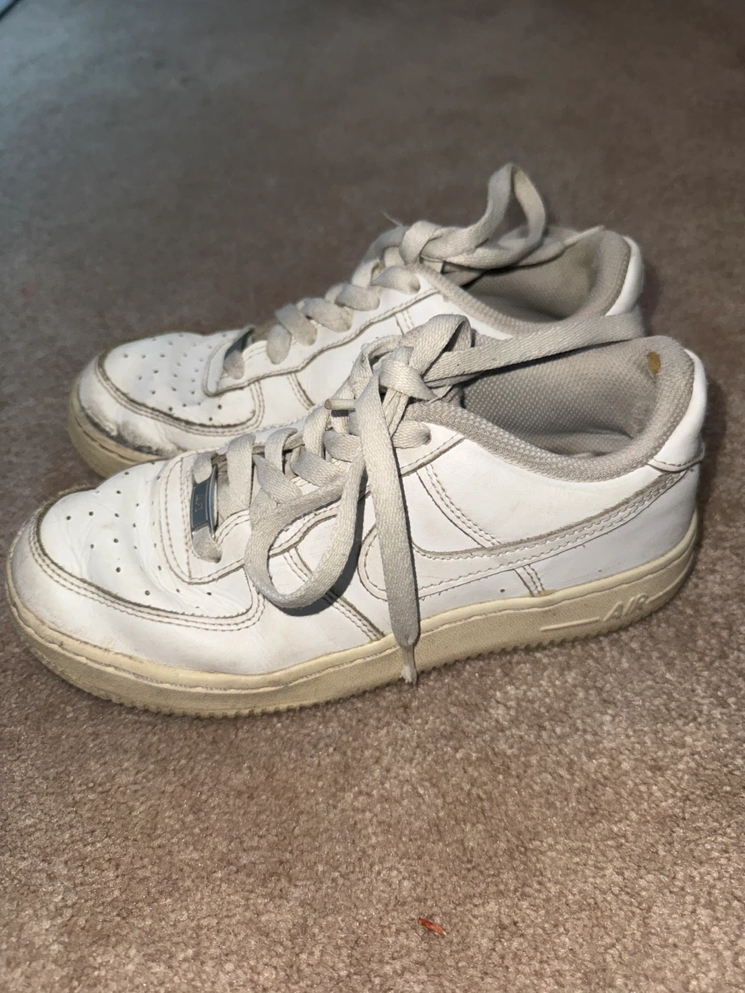 Selling a pair of Nike Air Force 1 sneakers. They're in used condition, as you can see in the photos, but still have lots of life left! Size is 4.5y