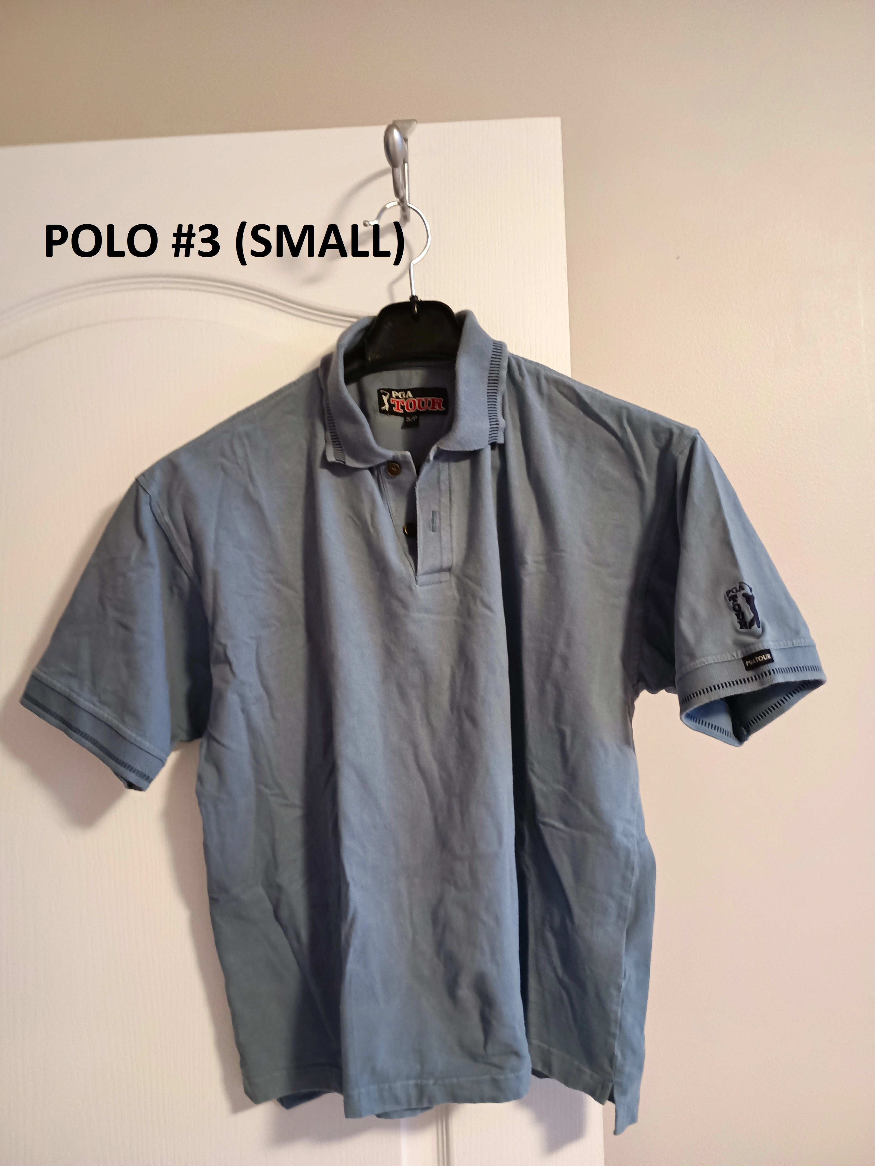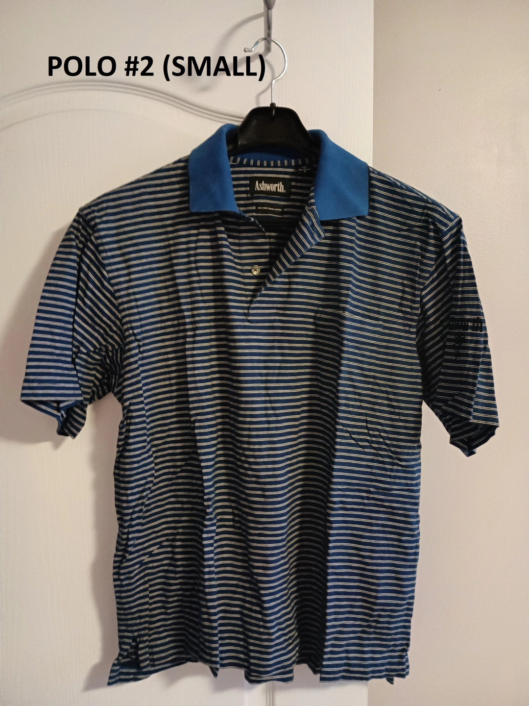 Located in OSHAWA ... Ritson Road North and Taunton Road area *** $10 (FIRM) each ... 4 Available *** *** Cleaning out closet/suitcases & gotten too fat! *** MINT No Rips No Tears Rarely Worn Various Men's Polo Shirts Size: Small POLO #1 - Bahama (Striped) POLO #2 - Ashworth (Black) POLO #3 - PGA TOUR (Light Blue/Grey) POLO #4 - Dockers (Grey)