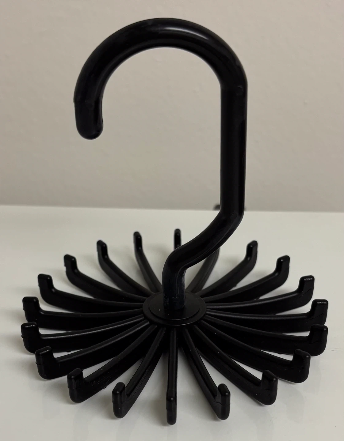 Here's a handy black rotating tie rack! It's perfect for keeping your ties organized and easily accessible. It's in great shape and ready for a new home. Brand new, as is, info in photo $5.00 exact cash only