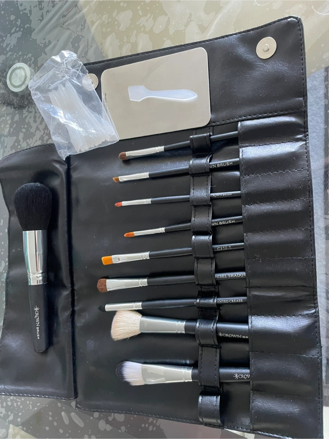 Selling a Crown Brush set that comes with a handy roll case to keep everything organized! The set includes a variety of brushes for different makeup applications, such as: - Crown Brush - WN Brush - C150-8 - Hisel Shadow - Dinted Crease Perfect for anyone looking to expand their makeup brush collection