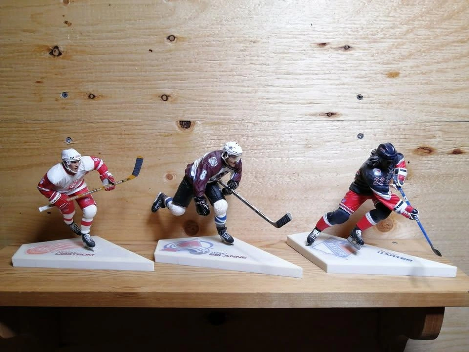 Located in OSHAWA ... Ritson Road North and Taunton Road area $20 (FIRM) each MINT McFarlane NHL Series 6 Figures Release Year: October 2003 Left to Right: #5 Niklas Lidstrom - Detroit Red Wings #8 Teemu Selanne - Colorado Avalanche #22 Anson Carter - New York Rangers