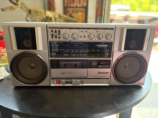 This Hitachi model TRK – 9100HC vintage boombox from 1983 is a nostalgic piece of audio equipment ready to blast your favourite tunes. Very good condition. Specifications: * Model: TRK – 9100HC * Year: 1983 * Brand: Hitachi Comparable Kijiji listings are selling in the $$250 to $550