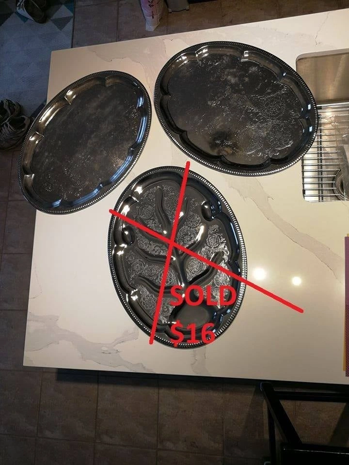 Located in OSHAWA ... Ritson Road North and Taunton Road area *** $10 (FIRM) each (2 available) or $15 (FIRM) for the matching pair *** NEW from 1980s 18" Stainless Steel Oval Serving Platter