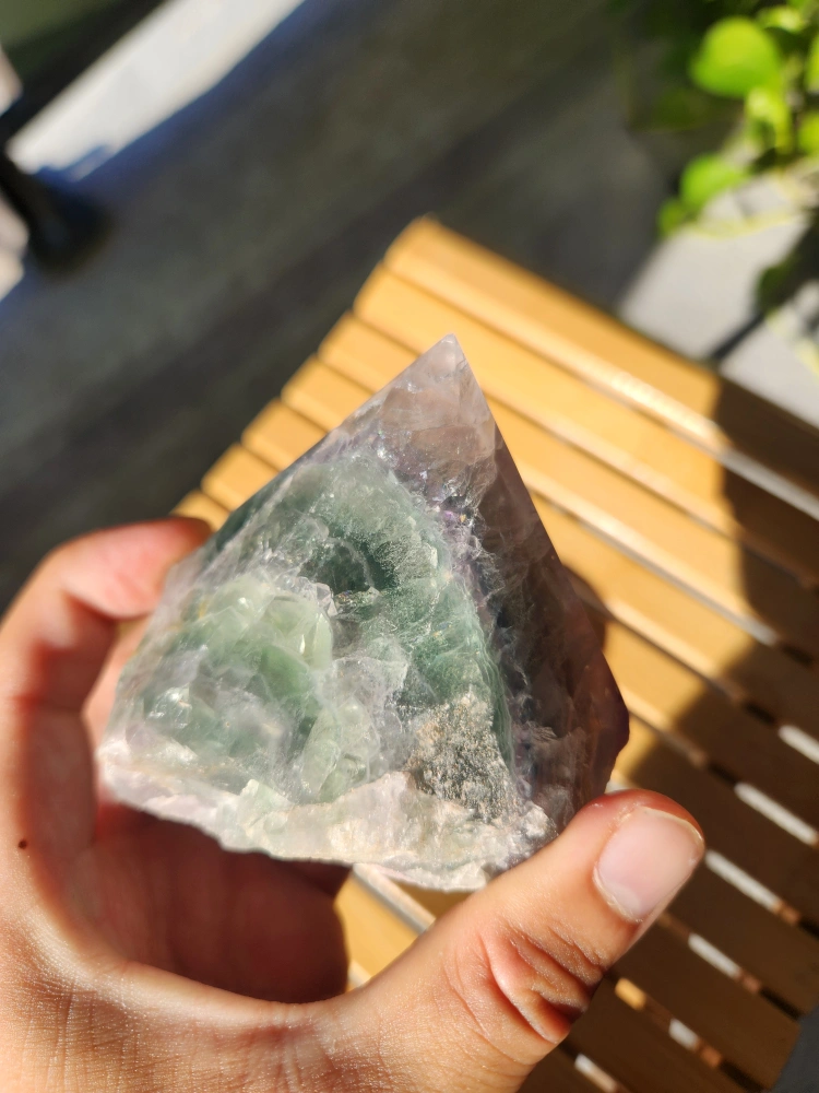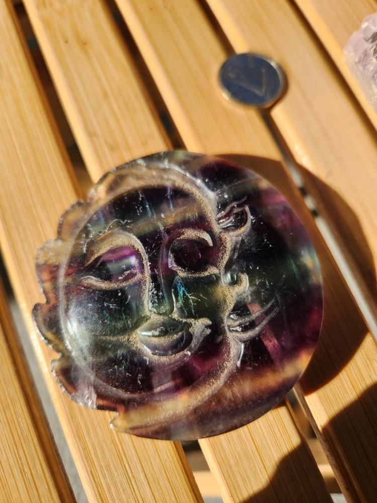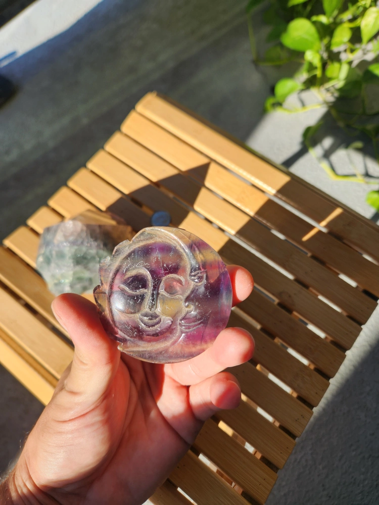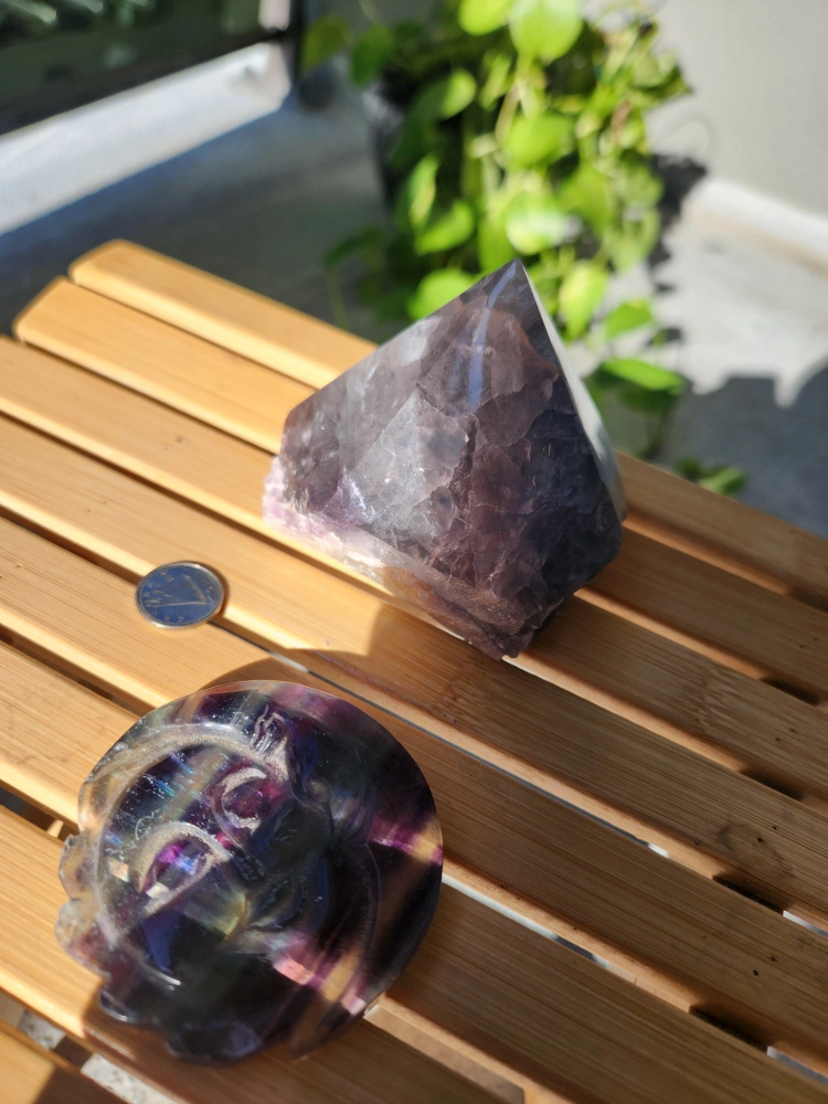 Fluorite Crystal Pyramid & Moon Carving
