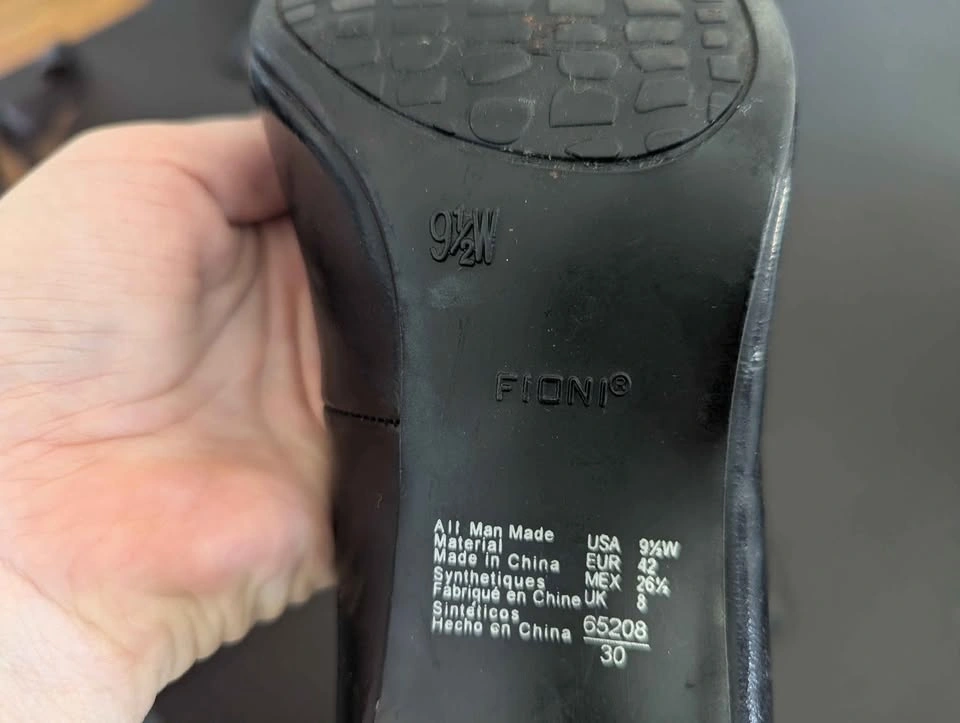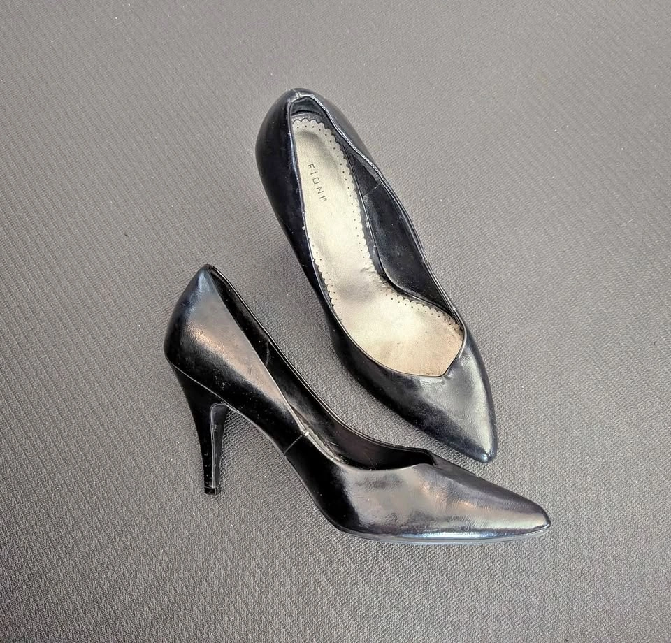 Elevate your look with these classic black Fioni stiletto heels! Perfect for a night out, office wear, or any special occasion. These stylish pumps offer a sleek design and comfortable fit, making them a versatile addition to your wardrobe. Gently used and in great condition.